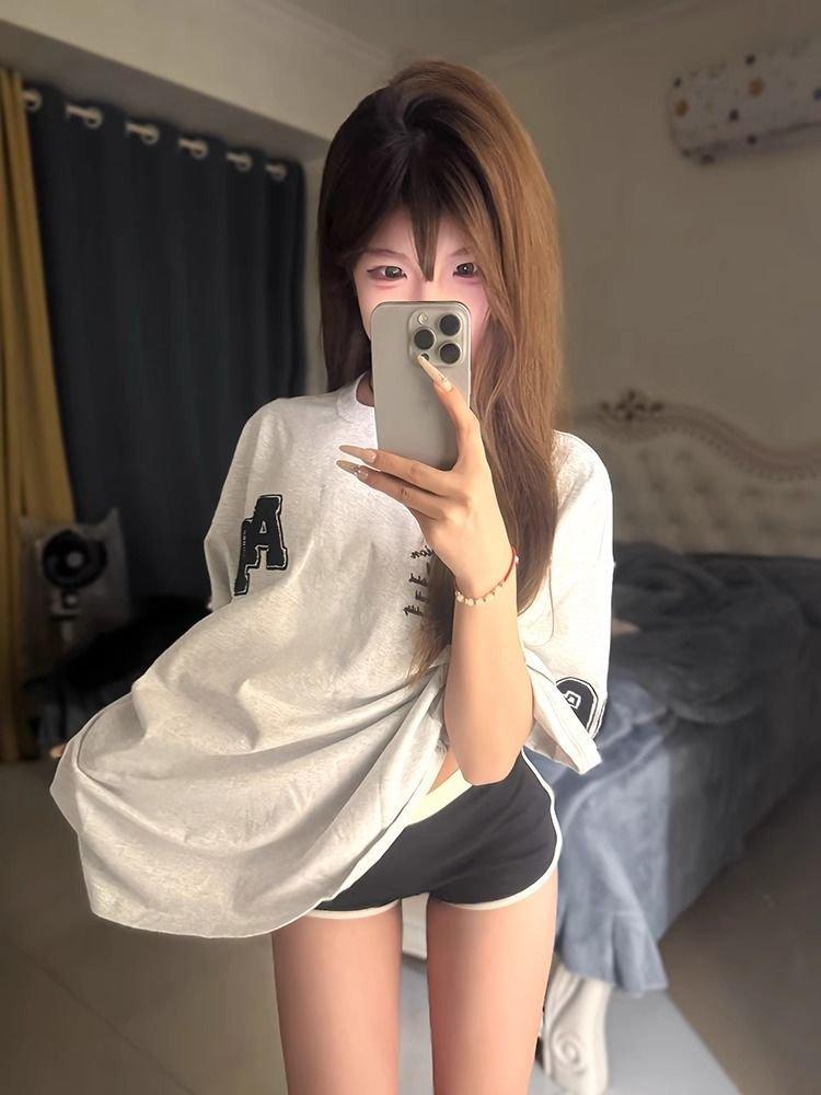 Compre Street Style Preto e Branco Estampado Manga Curta Tops Algodão Puro Camiseta de Manga Curta Camiseta Feminina Estilo Esportivo Pulôver Estilo Hong Kong no atacado no Joom.pro