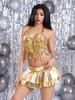 Traje de performance de bar novo feminino gola de DJ palco chique sexy estilo Hong Kong top de renda conjunto de moda dança jazz