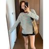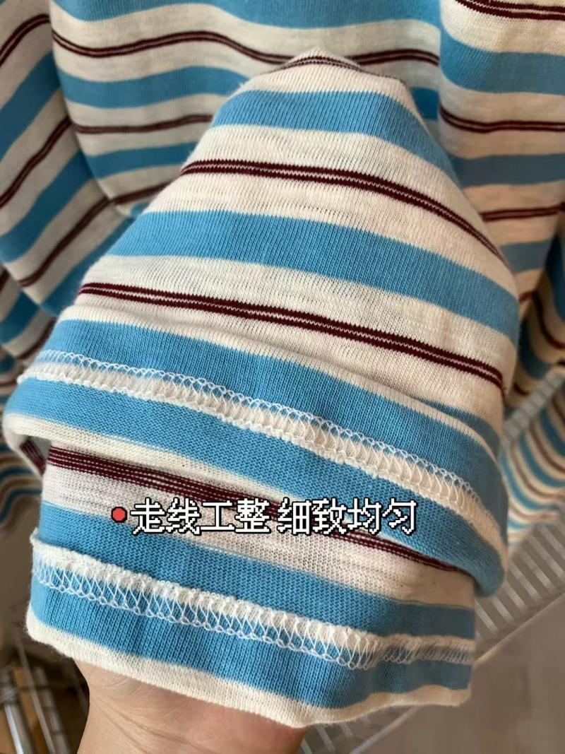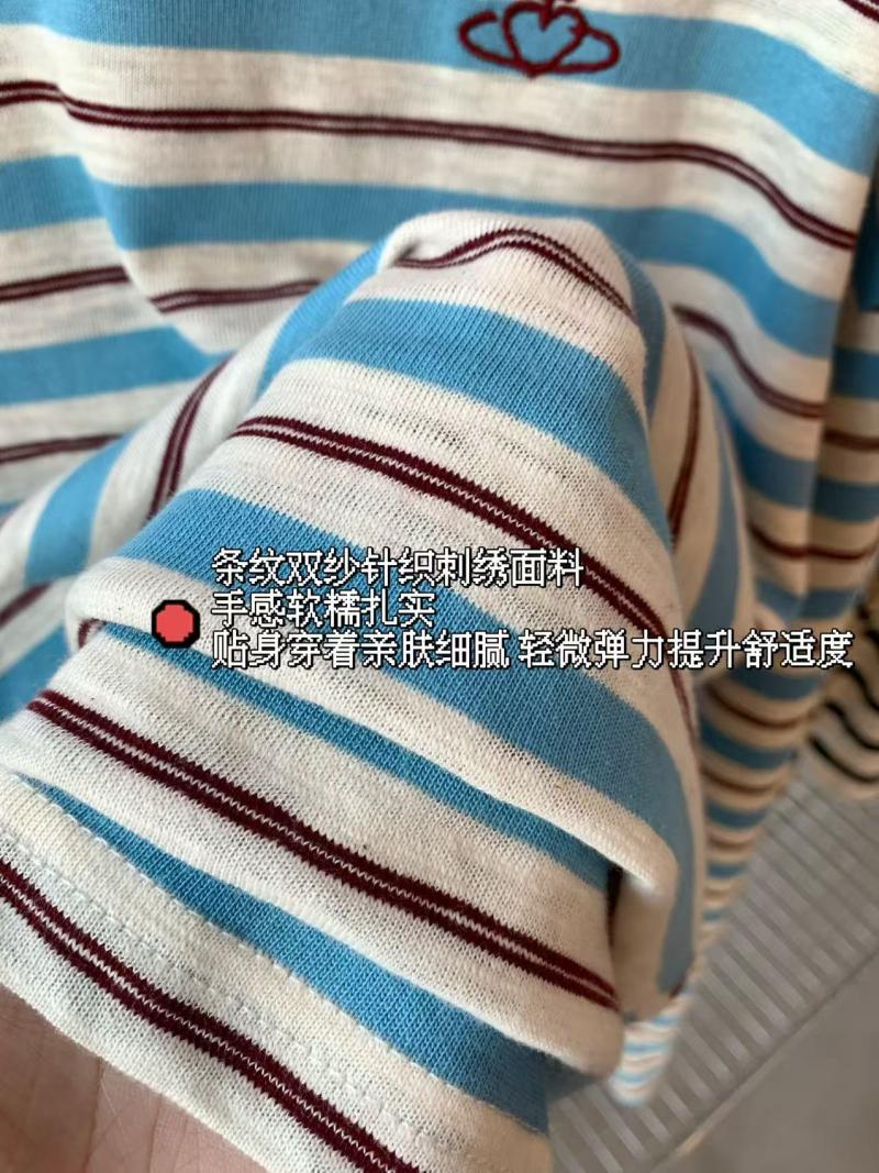 Tecido de malha bordado de fio duplo listrado selecionado, macio e sólido ao toque