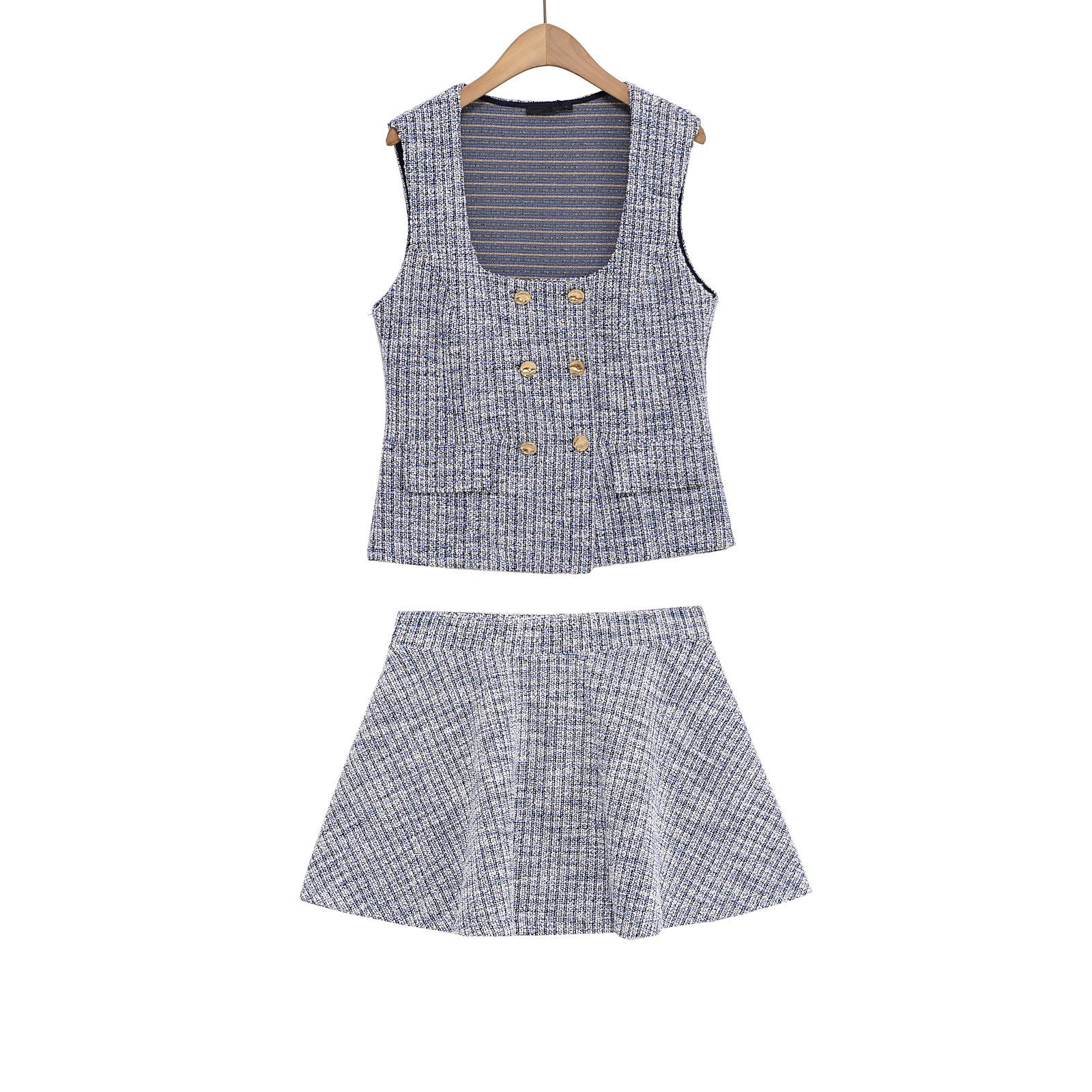 Compre Roupa Europeia e Americana Transfronteiriça 2025 Novo Estilo de Verão Terno Retrô com Abotoadura Dupla Colete Elegante Conjunto de Saia de Cintura Alta no atacado no Joom.pro