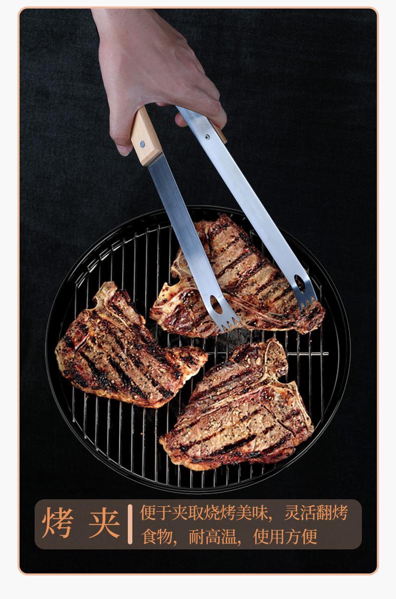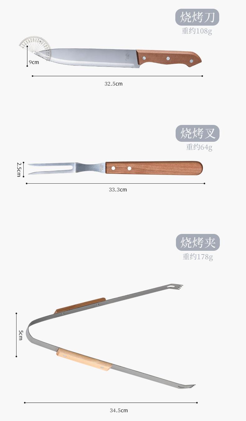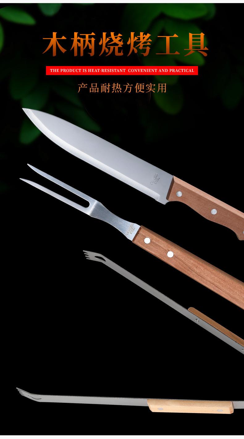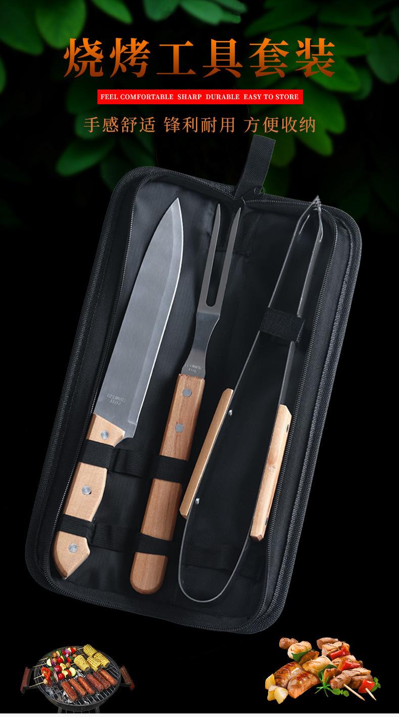 Ferramenta de Churrasco para Uso Doméstico ao Ar Livre Combinação Saco de Pano Cabo de Madeira de Rio Conjunto para Assar Garfo de Aço Inoxidável Pá Pinça Amazon