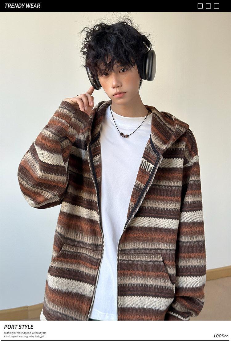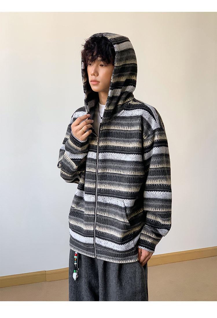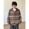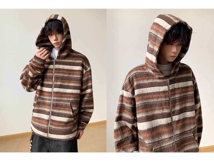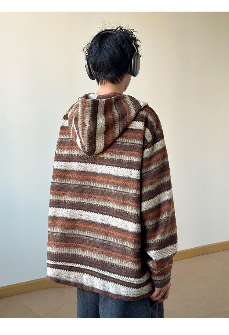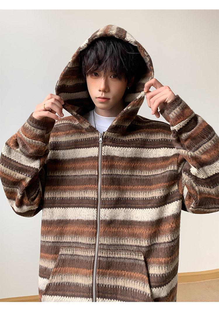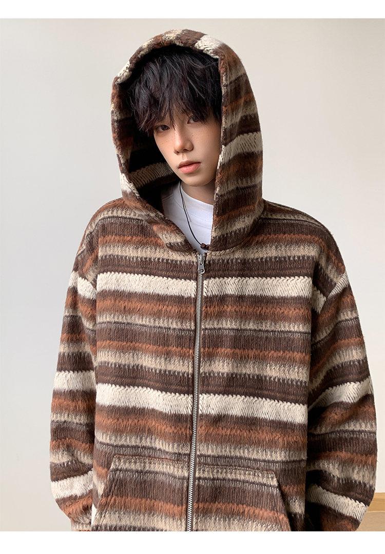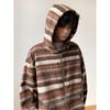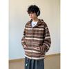 Novo Moletom de Outono Japonês Preguiçoso Listrado Lã Solto Amarrar Casual Moletom com Capuz