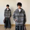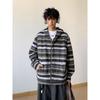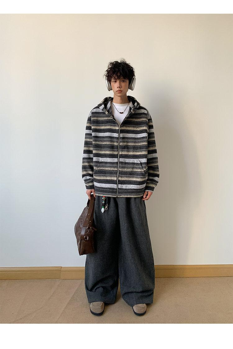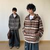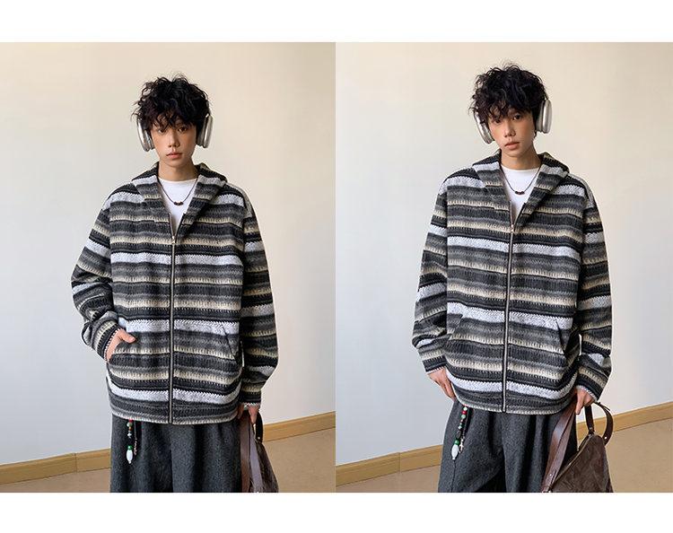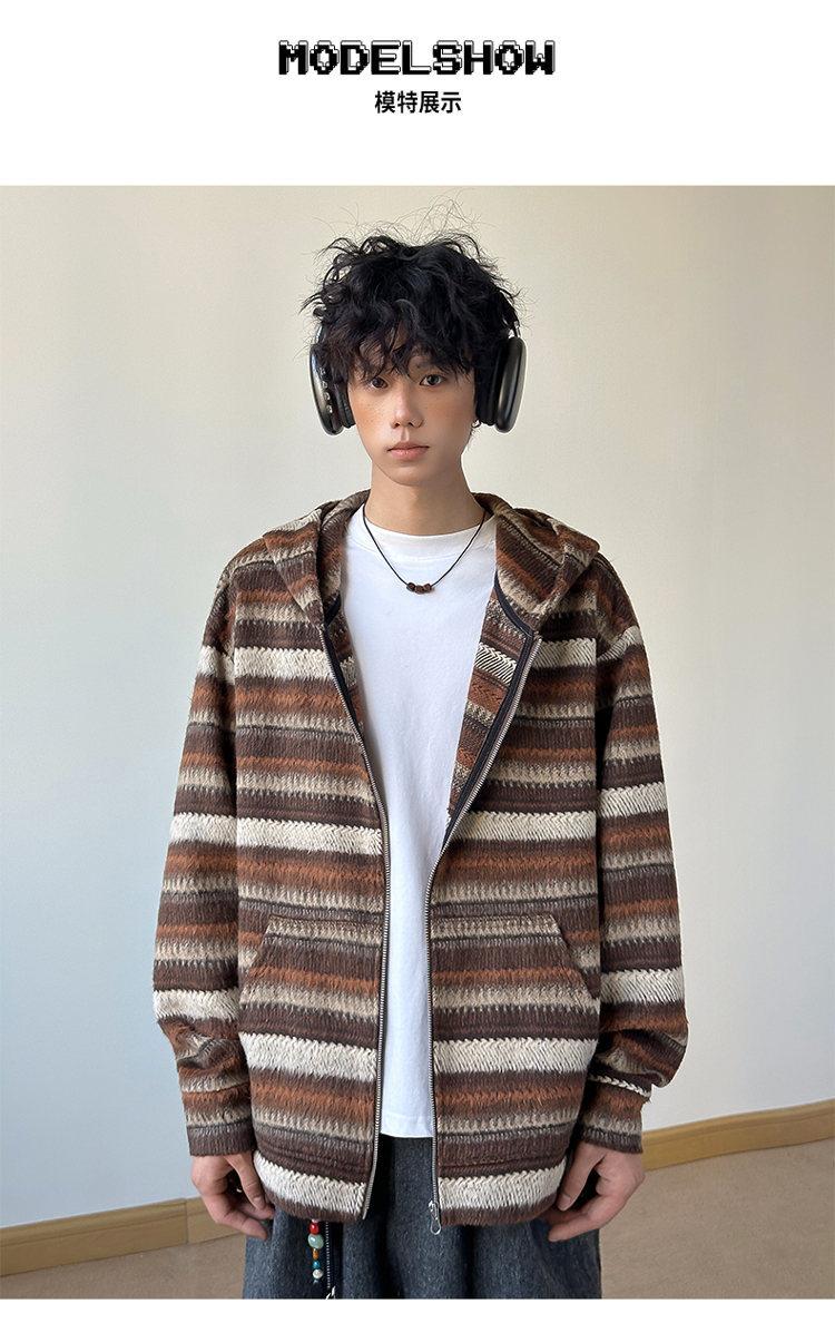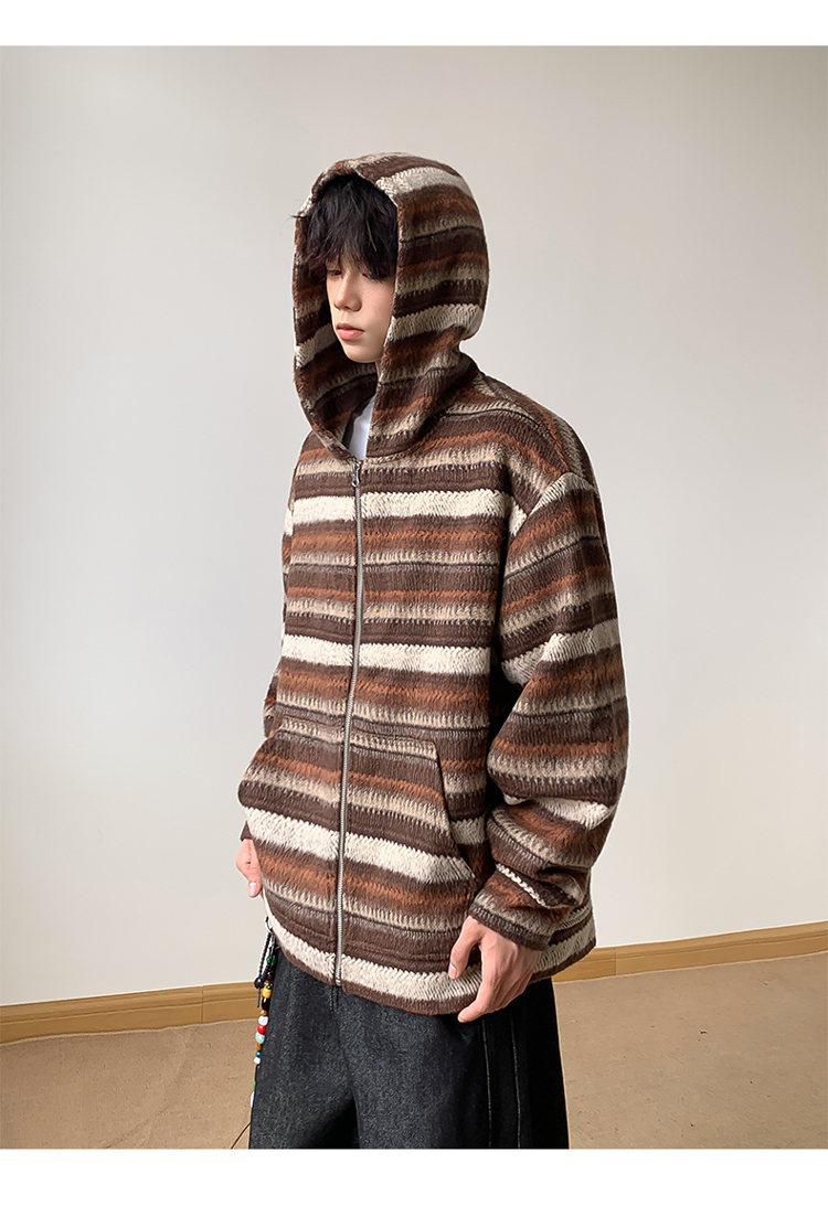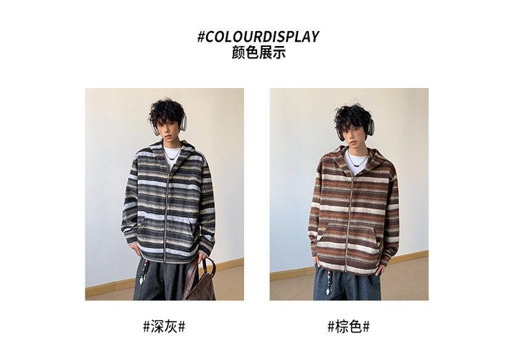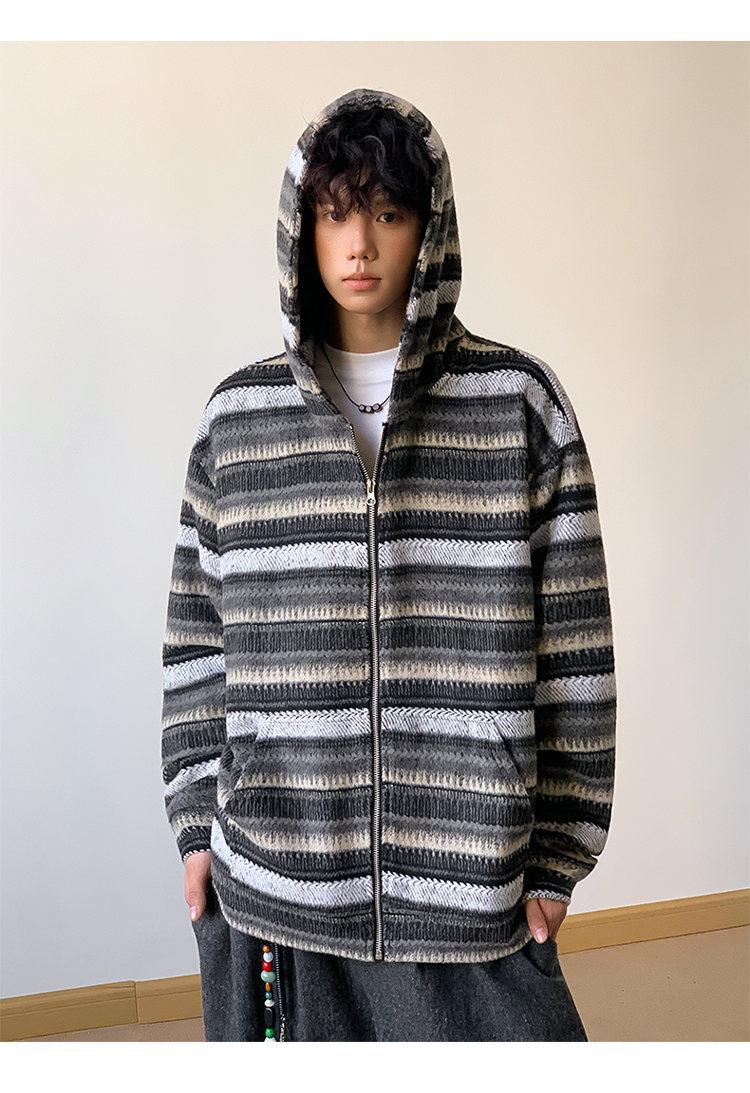 Novo Moletom de Outono Japonês Preguiçoso Listrado Lã Solto Amarrar Casual Moletom com Capuz
