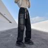 Jeans High Street Vibe Tooling Masculino e Feminino Verão Fino Retro vintage Reto Solto Perna Larga Calças