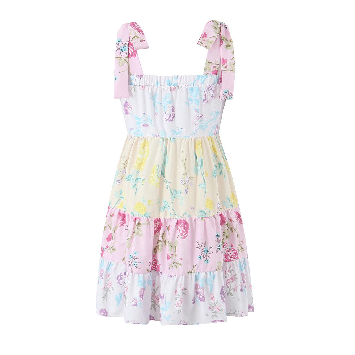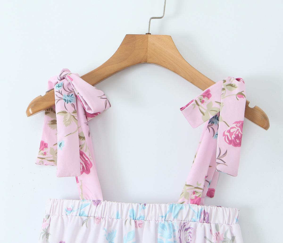 Atacado 2025 Novo Estilo Europeu e Americano Roupa Feminina Patchwork Plissado Saia Bainha Larga Vestido Tomara que Caia com Amarração 7203