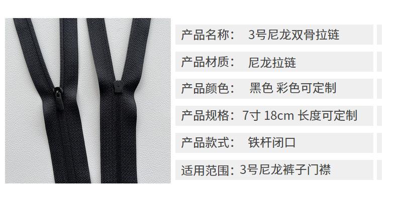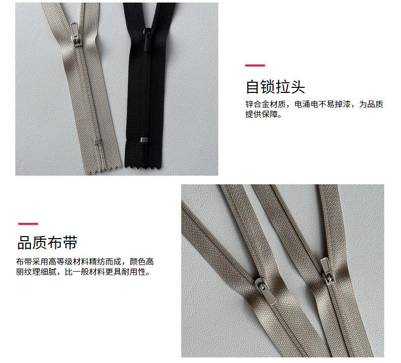 Calças Oeste de Zíper de Osso Duplo de Nylon nº 3 com Carcela Zíper Rabo Fechado Zíper Invisível Mola Auto-travante Pintura Puxador