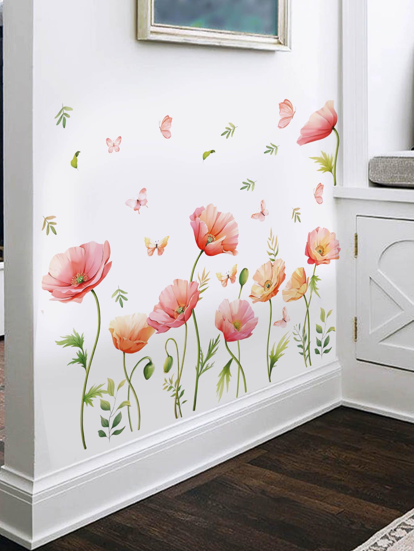 Compre Adesivos de Parede Transfronteiriços Novos Rosa Floral Borboleta Sala de Estar Quarto Decoração de Parede de Fundo Doméstico Adesivos Autoadesivos no atacado no Joom.pro