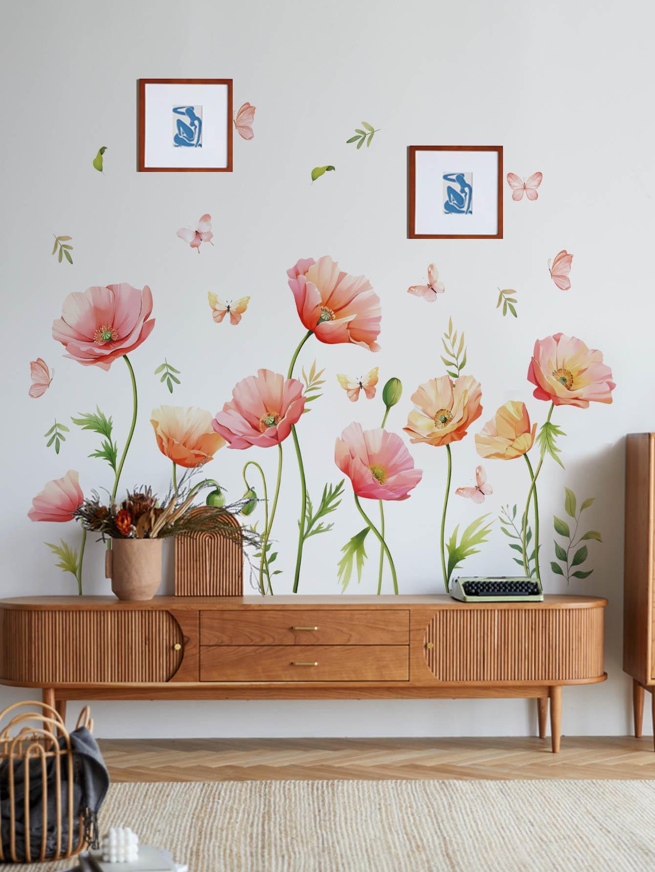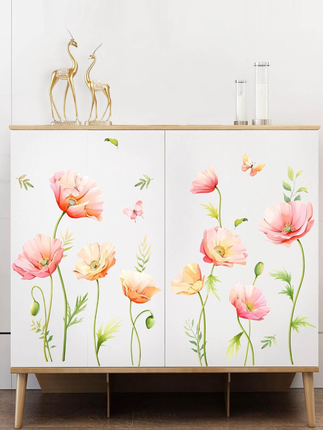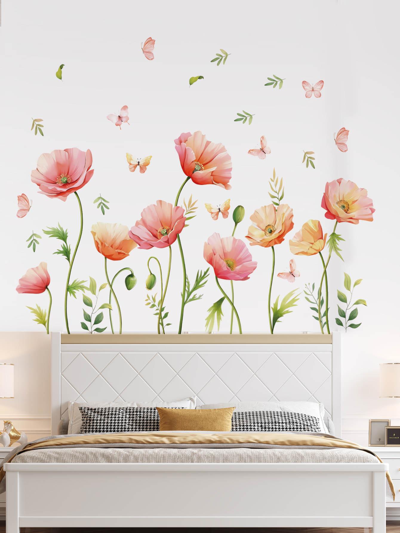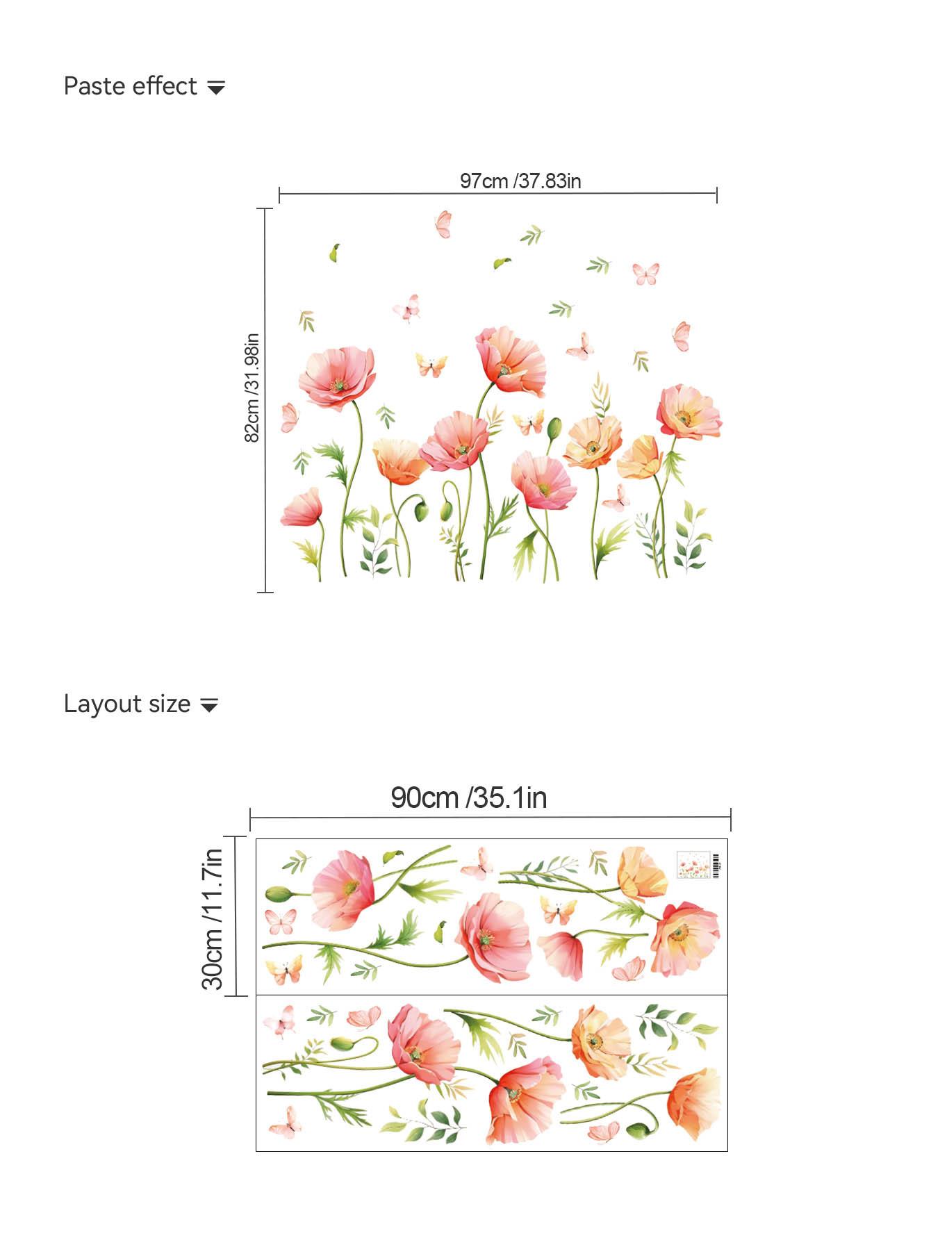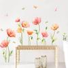 Adesivos de Parede Transfronteiriços Novos Rosa Floral Borboleta Sala de Estar Quarto Decoração de Parede de Fundo Doméstico Adesivos Autoadesivos