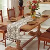 Novo Jacquard Tinto em Fio Transfronteiriço Poliéster Algodão Natal Fio Dourado Xadrez Caminho de Mesa Decoração Cobertura Pano Fabricante de Toalha de Mesa