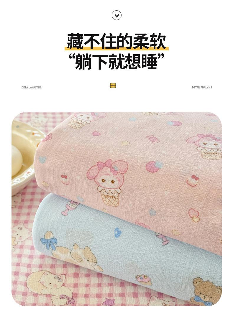 Conjunto de Cama Floral Estilo Ins de Gaze Dupla Camada de Três Peças Lençol de Cama Solteiro Algodão Lavado Peça Única Lençol de Cama Quarto Doméstico Amigável à Pele Lençol de Cama
