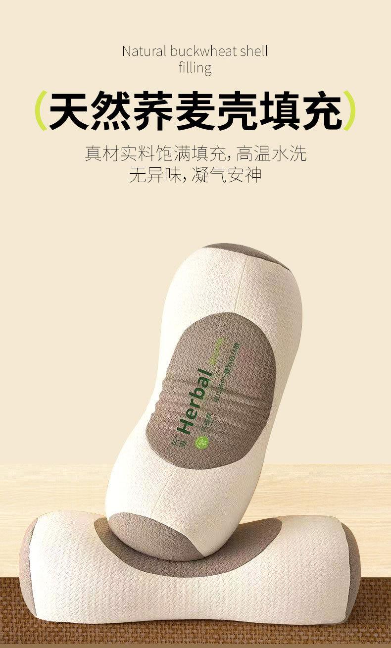 Travesseiro de Casca de Trigo Sarraceno para Suporte do Pescoço Ajuda para Adultos Dormir Travesseiro de Tração com Arco Ósseo Suporte Travesseiro Cervical Cilíndrico Duro