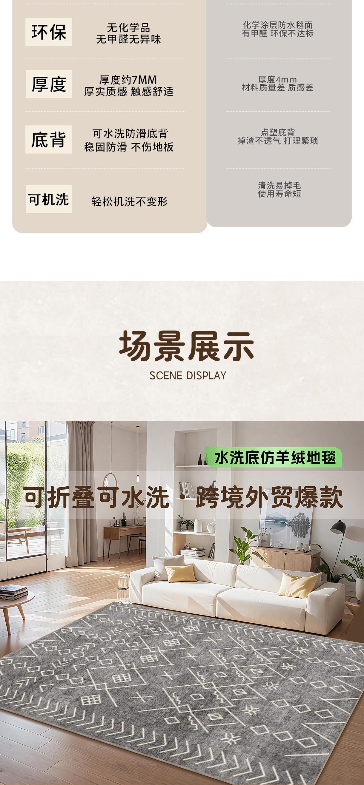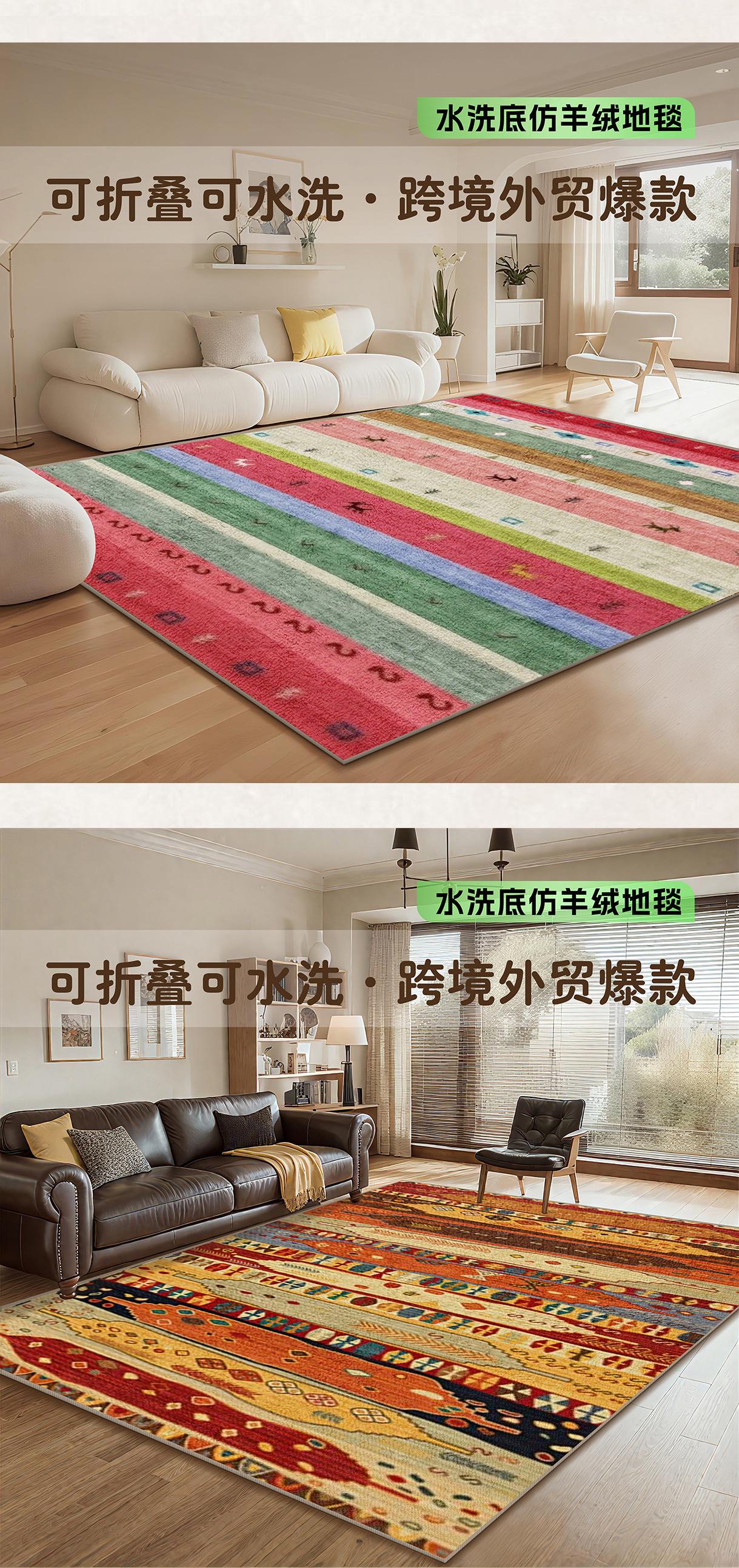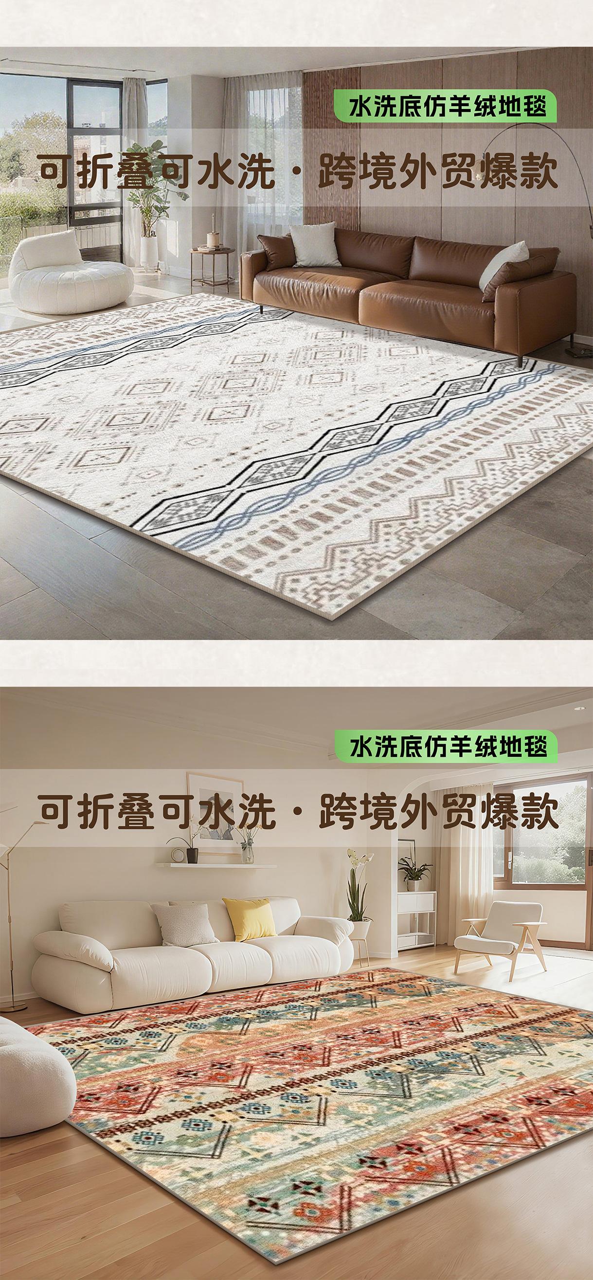 Tapete lavável de caxemira de imitação transfronteiriço sala de estar 2025 novo tapete de chão lavável à máquina quarto mesa de centro cobertura total Persa