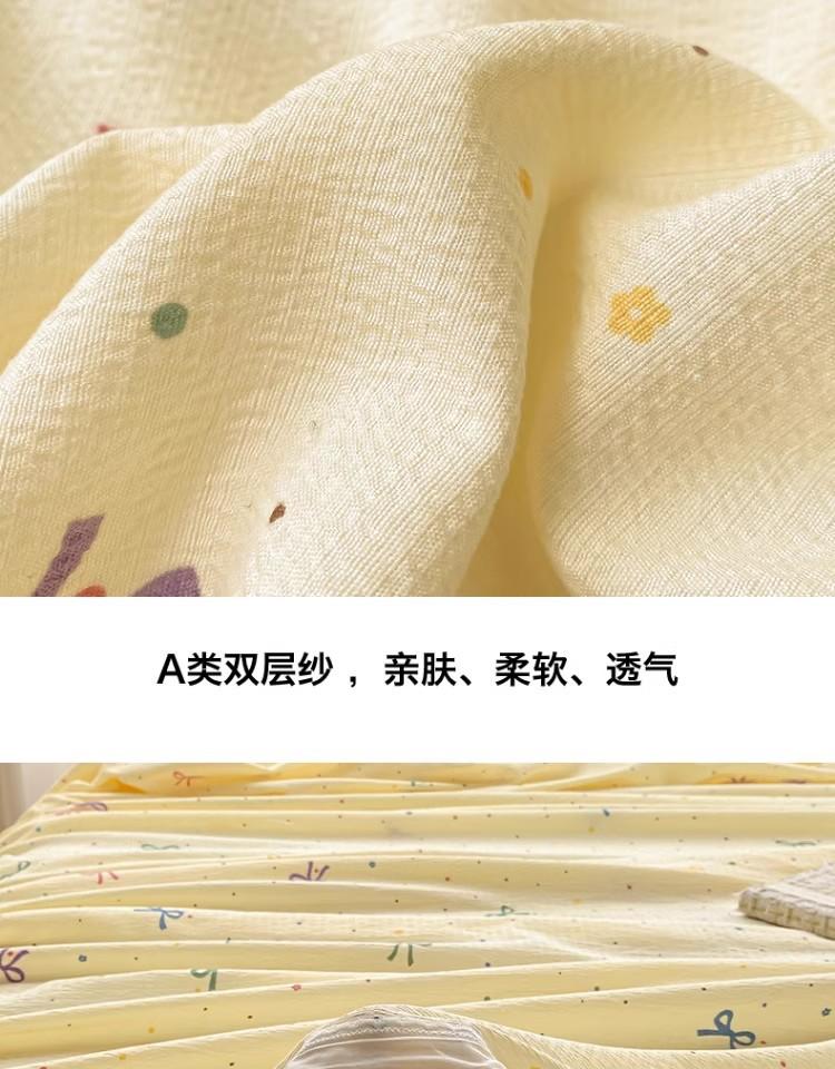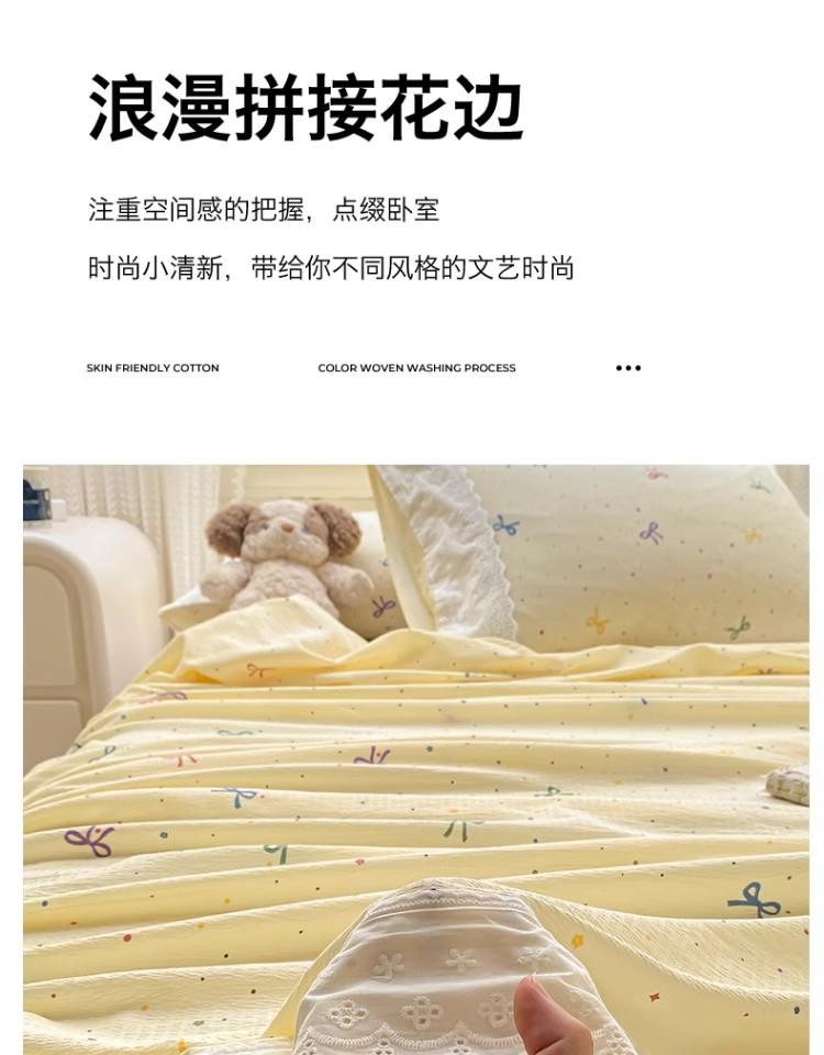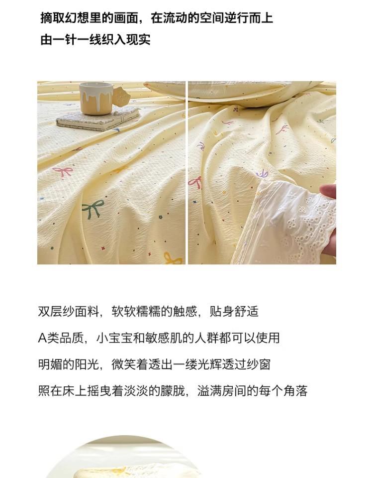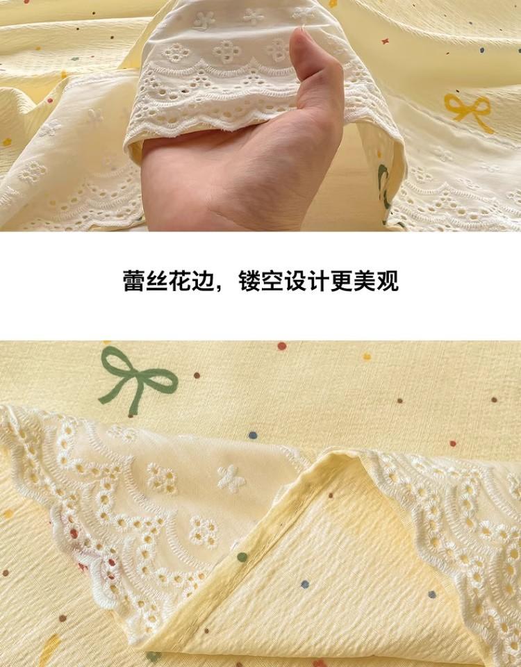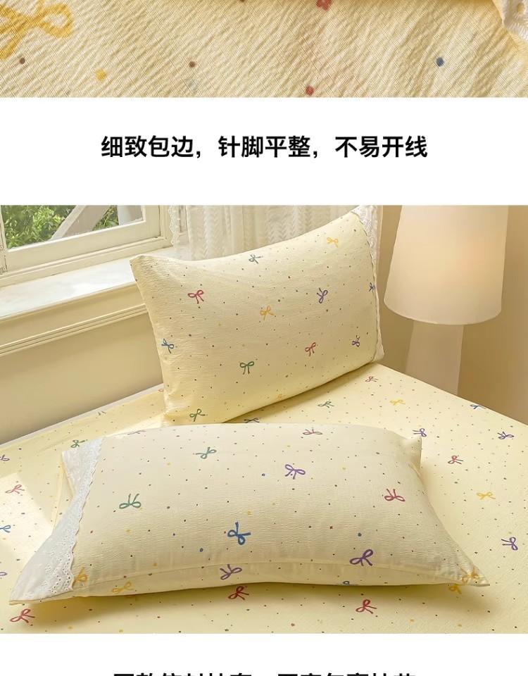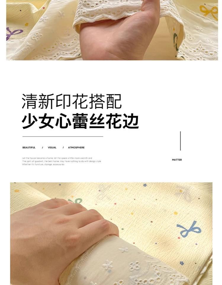 Conjunto de Cama de Gaze Enrugada de Três Peças, Lençóis de Cama Finos Populares de Verão, Laváveis à Máquina, Dormitório de Estudantes Estampado, Lençóis de Cama e Fronhas de Cama Amigáveis à Pele