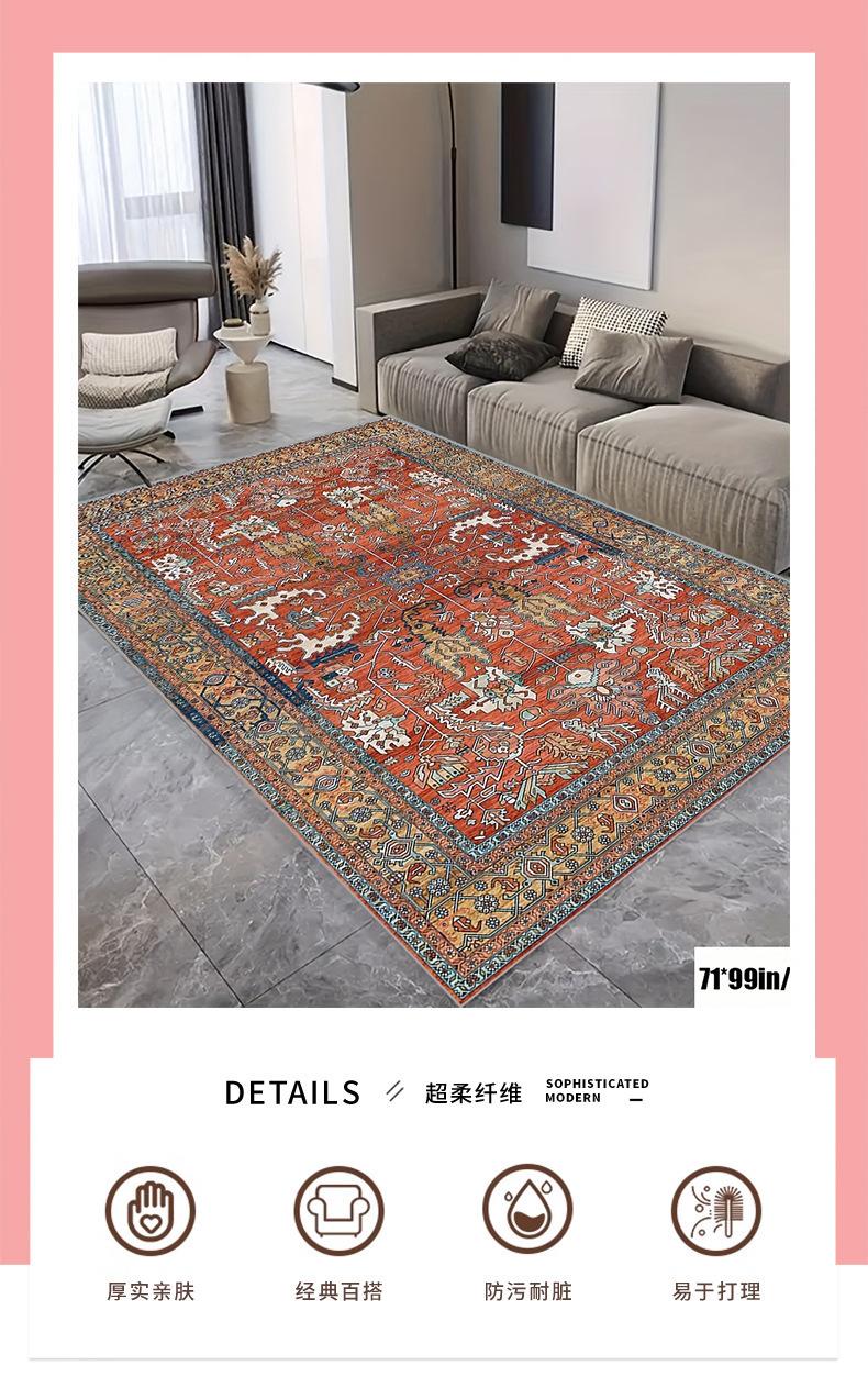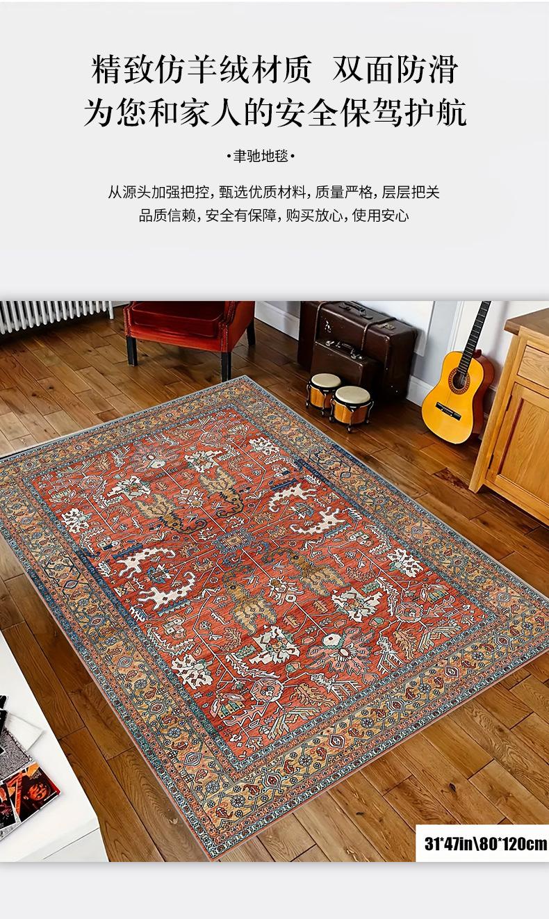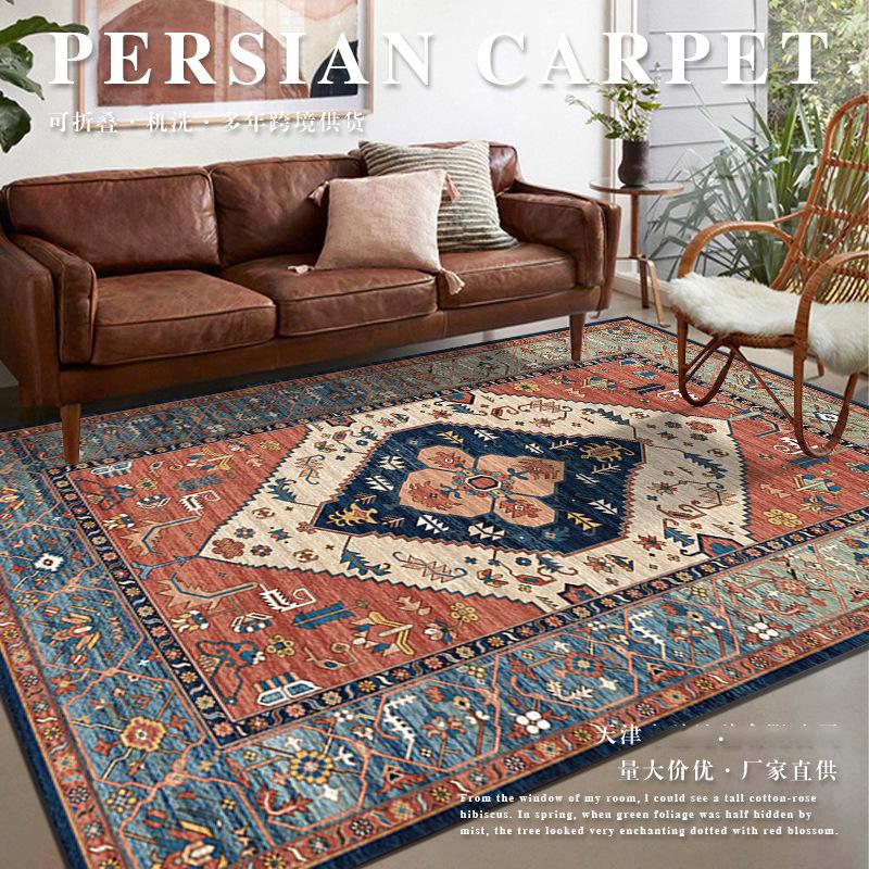 Tapete Persa Retrô Transfronteiriço Sala de Estar Fácil de Cuidar Dobrável Lavado Imitação de Caxemira Tapete Quarto Tapete de Cabeceira