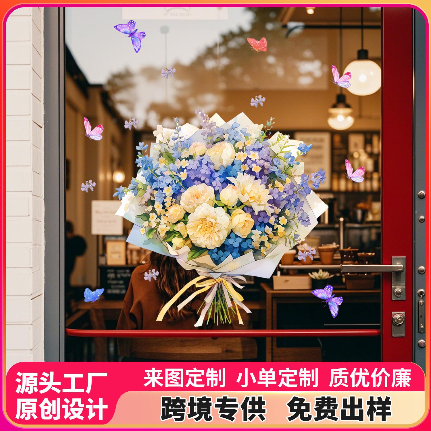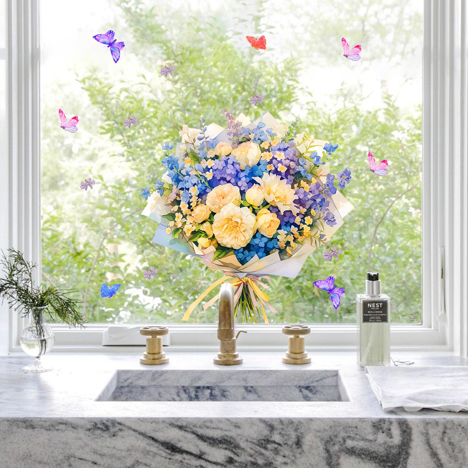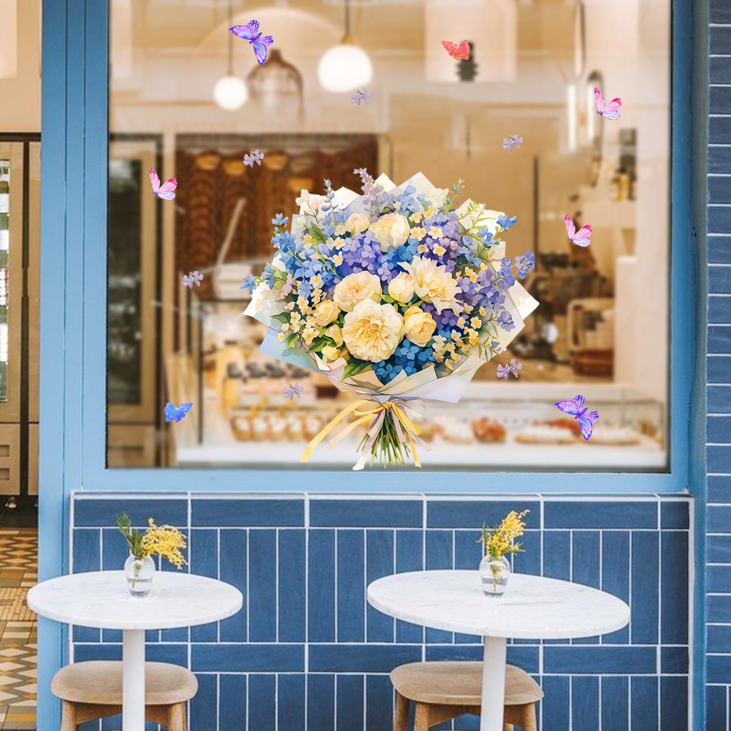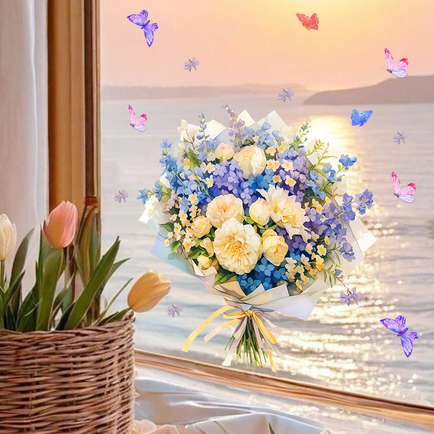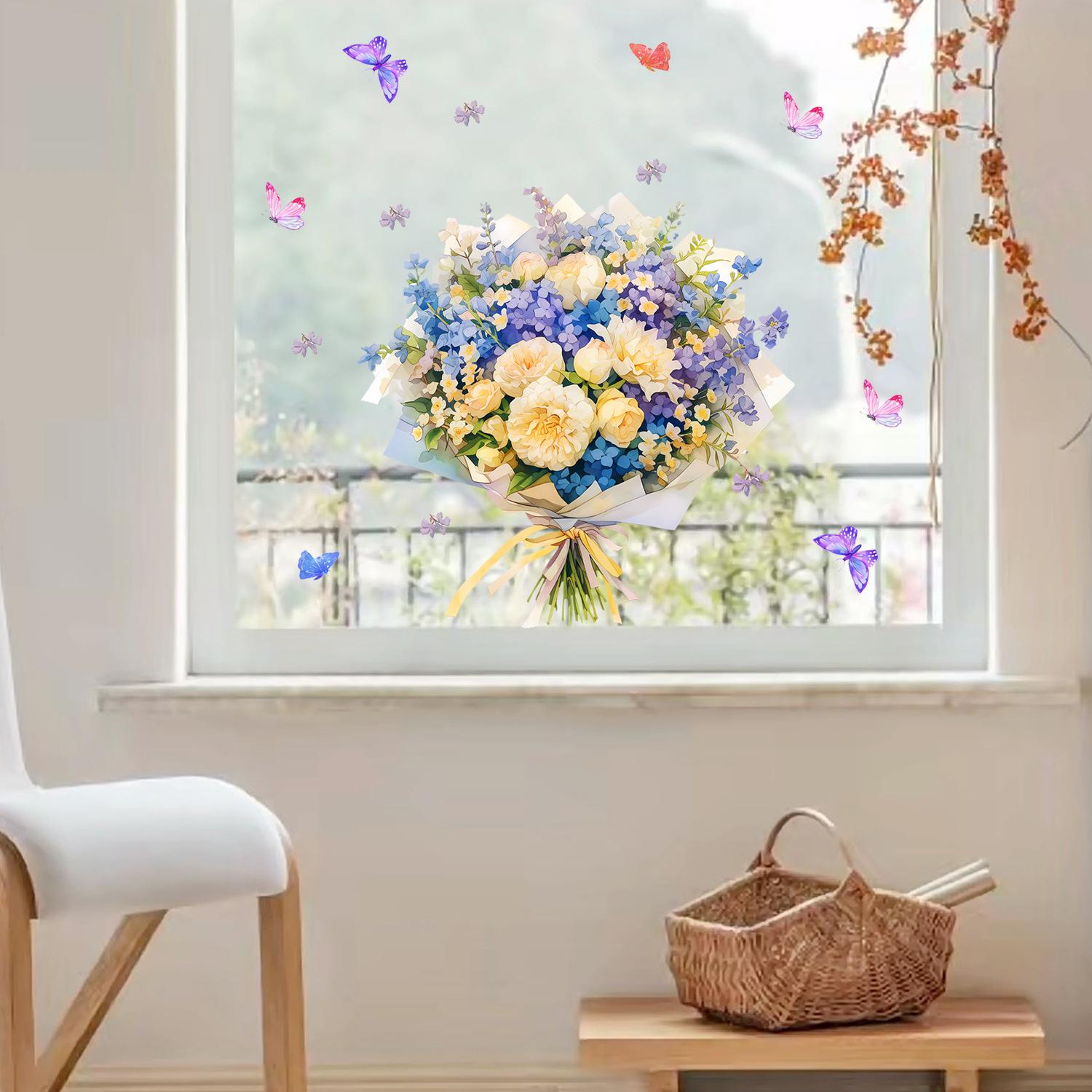 Amazon Fronteiriça Buquê Pintado e Borboleta Exibição de Janela Fundo de Casa Adesivos Decorativos Atacado PVC Autoadesivo