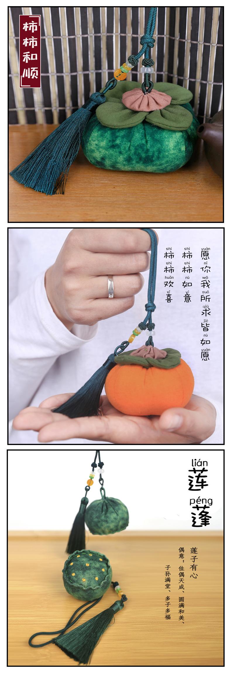 Modelo Novo 2025 Feito Sob Medida Artemísia Repelente de Mosquitos Caqui Vagem de Lótus Sachê Estilo Antigo Caqui Feito à Mão Sachê de Boa Sorte