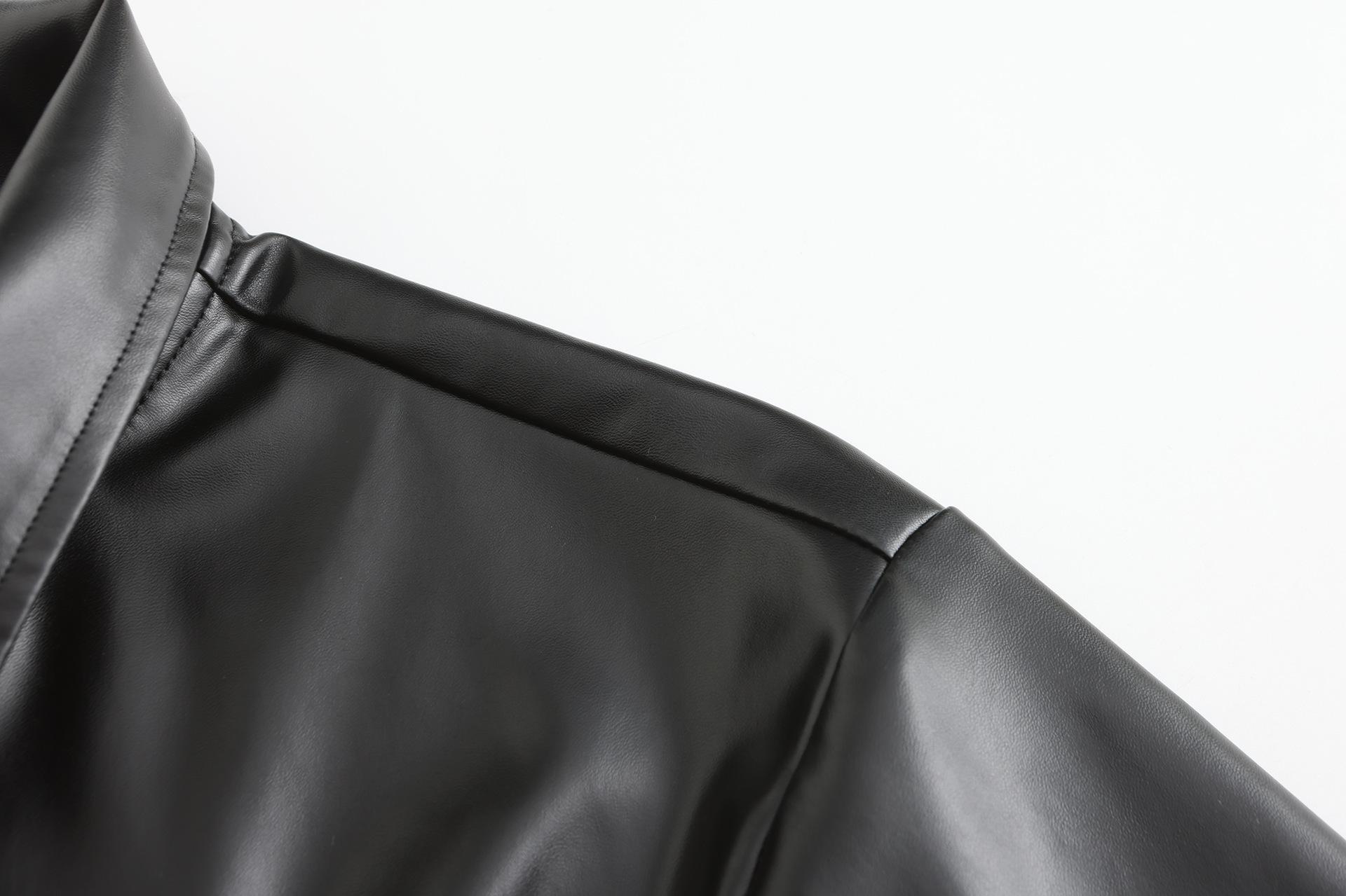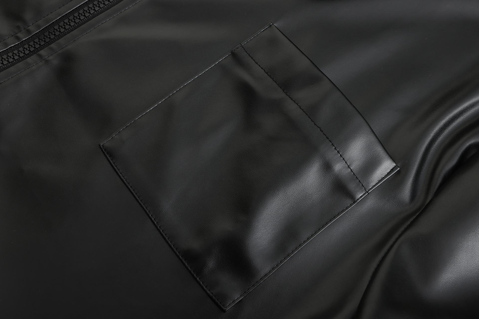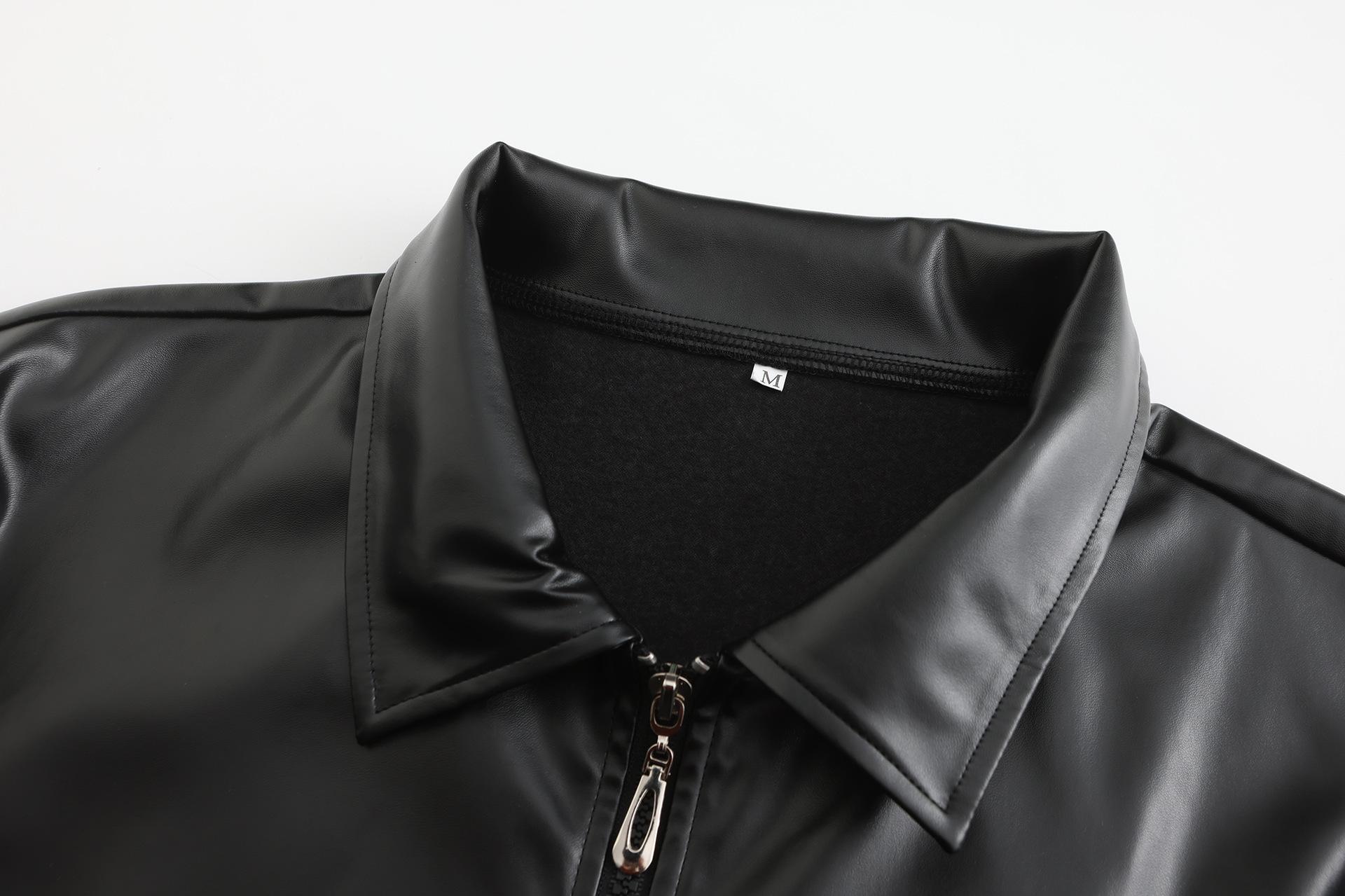 Novo Comércio Exterior Europeu e Americano Couro PU Zíper Jaqueta de Couro Casual Masculina de Manga Curta Couro Moda Cool
