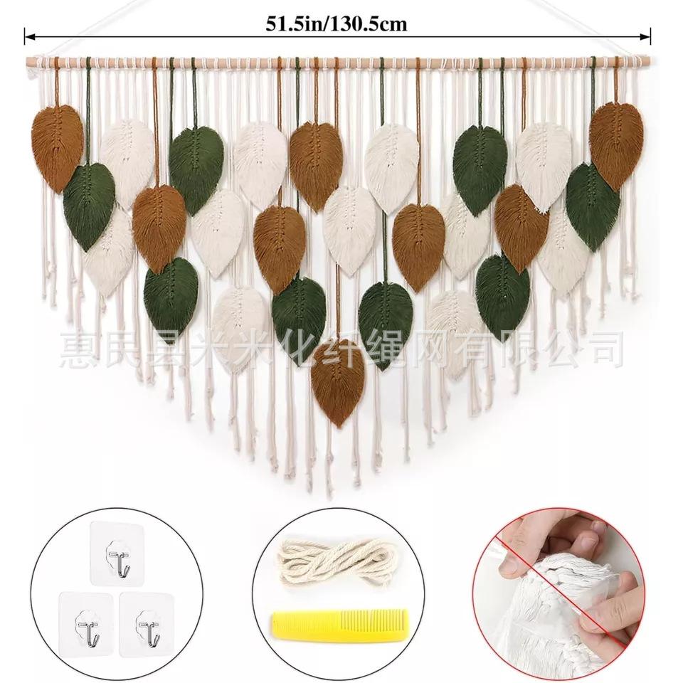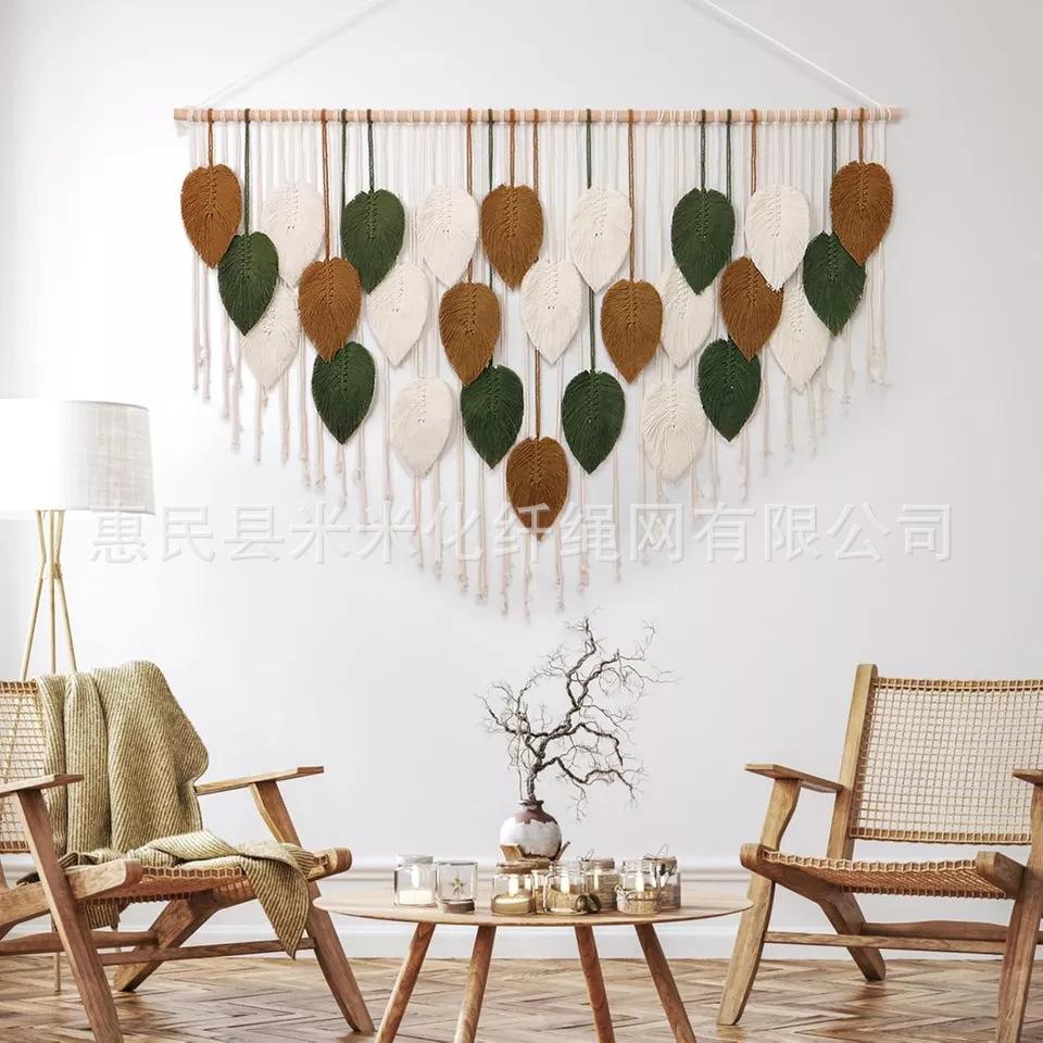 Compre Tapeçaria de corda de algodão boêmia com folhas transfronteiriça decoração de parede de fundo para sala de estar quarto estilo nórdico no atacado no Joom.pro