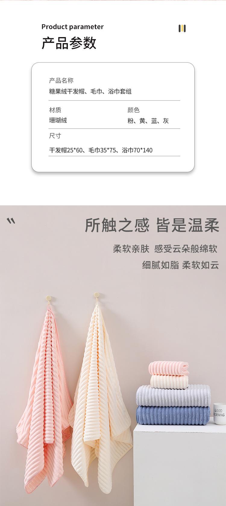 Toalha de Banho Candy Velvet Feminina Nova Doméstica Veludo Coral Espessada Toalha de Banho Macia Absorvente de Secagem Rápida Conjunto de Três Peças