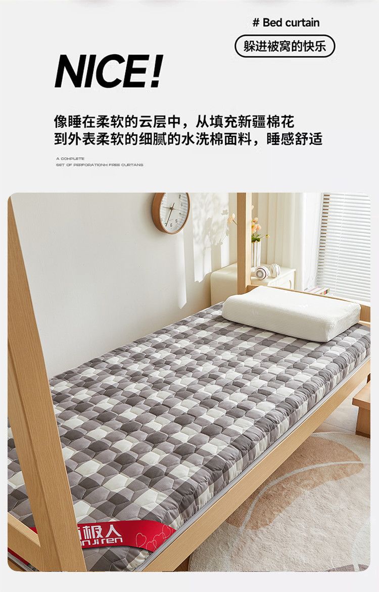 Large blue grid about 5cm thick丨First-grade Xinjiang cotton/High-density spine protection layer, Gray large gr...