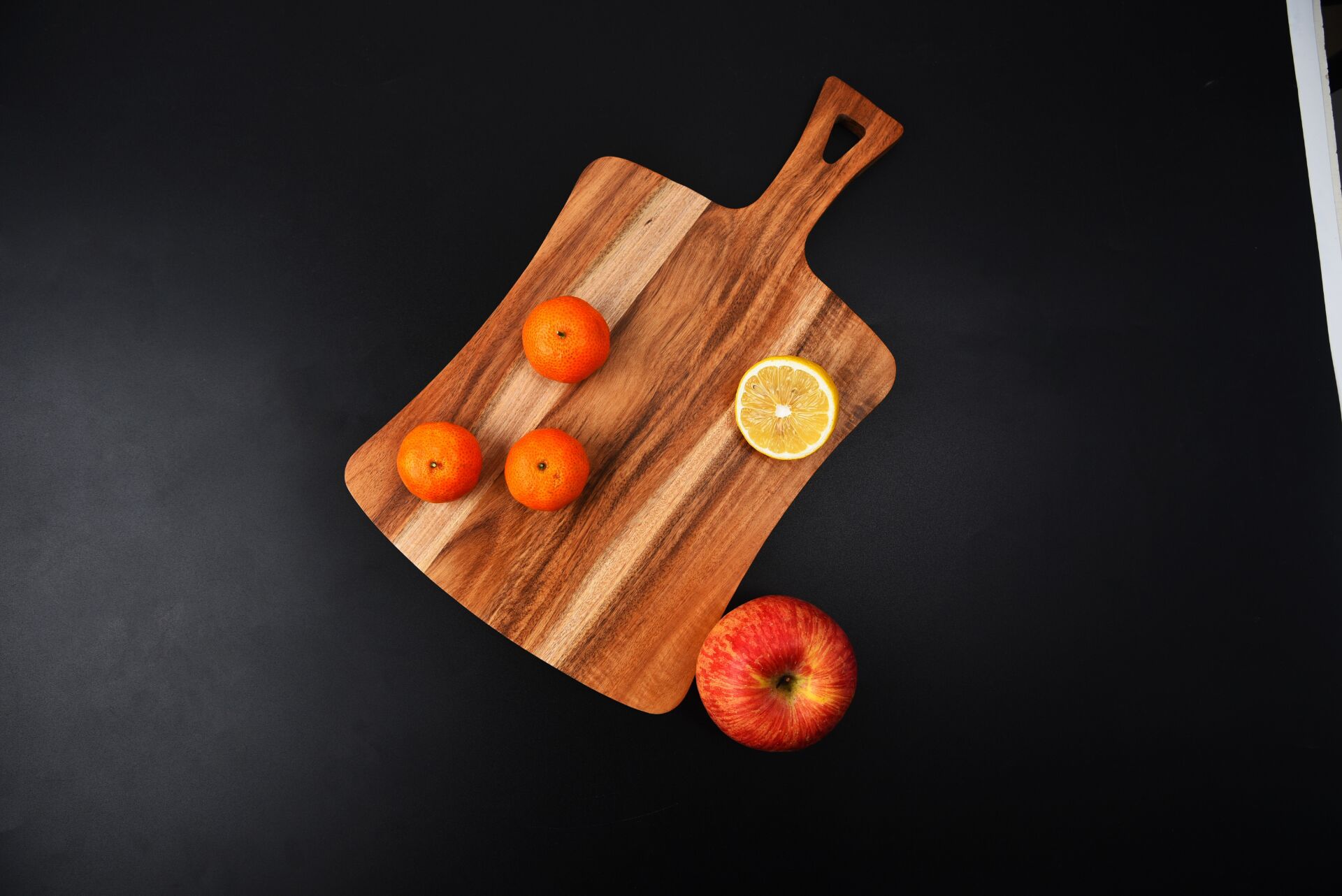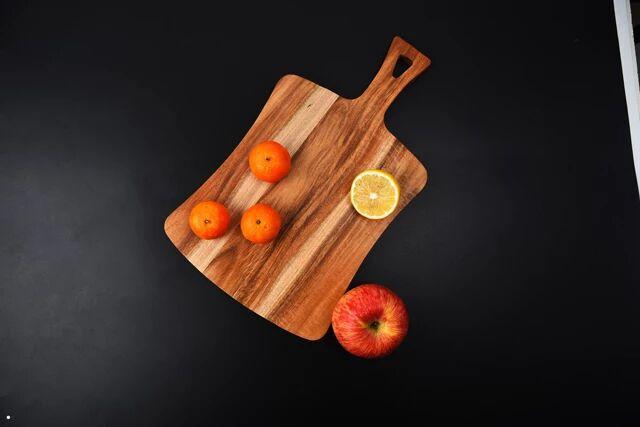Tábua de Corte de Madeira com Alça para Cozinha, Tábua de Servir para Restaurante, Bandeja de Madeira de Acácia para Frutas e Sobremesas para Sala de Estar, Tábua de Queijos