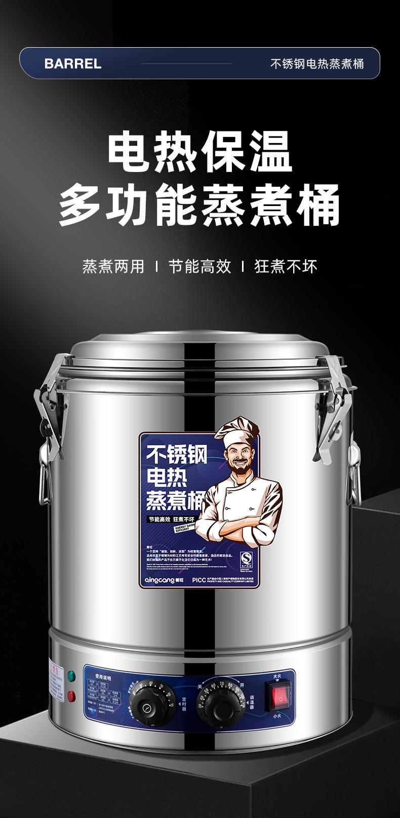 Uau Caldeirão Elétrico Comercial Personalizado de Aço Inoxidável Balde Elétrico de Aquecimento para Ferver Balde Isolado Balde para Carne Braseada Balde para Ferver Água Grande Capacidade