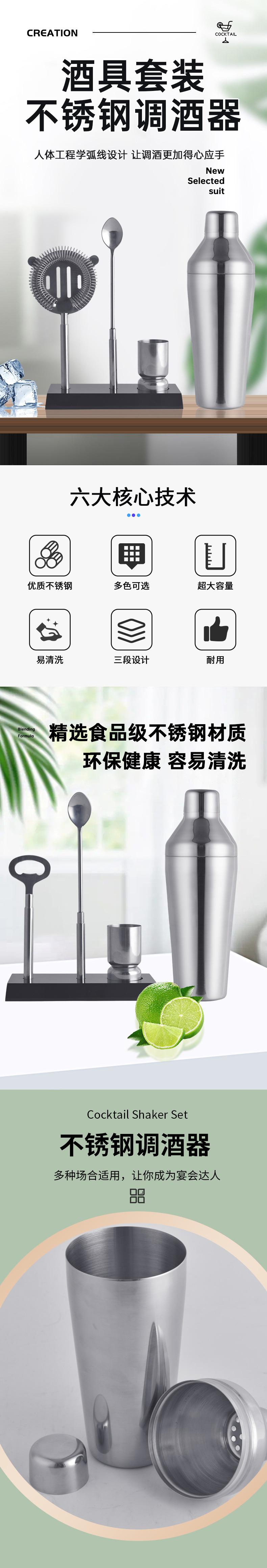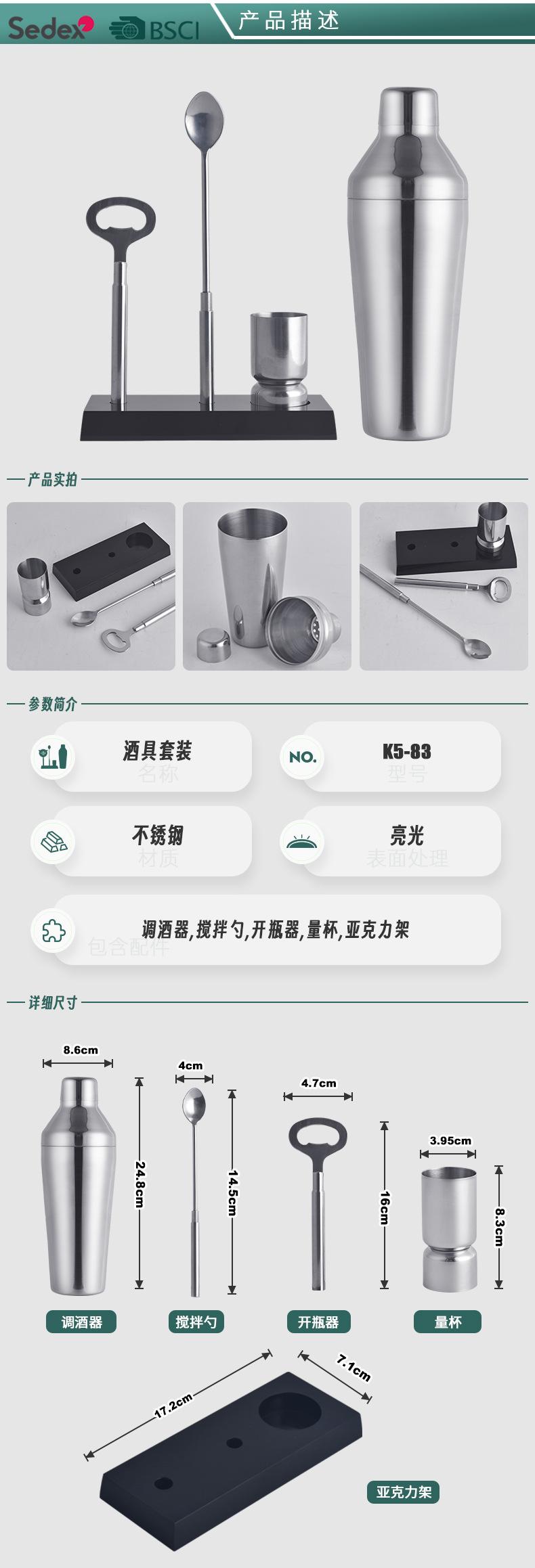 Conjunto de coqueteleira de aço inoxidável atacado de fábrica, ferramentas para bar, coqueteleira, suporte de acrílico para armazenamento, conjunto de cinco peças