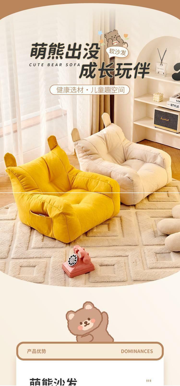 Sofá Infantil Preguiçoso Sala de Estar Bebê Leitura Desenho Animado Menina Fofa Cadeira Sofá Assento de Chão Casa Infantil Ursinho