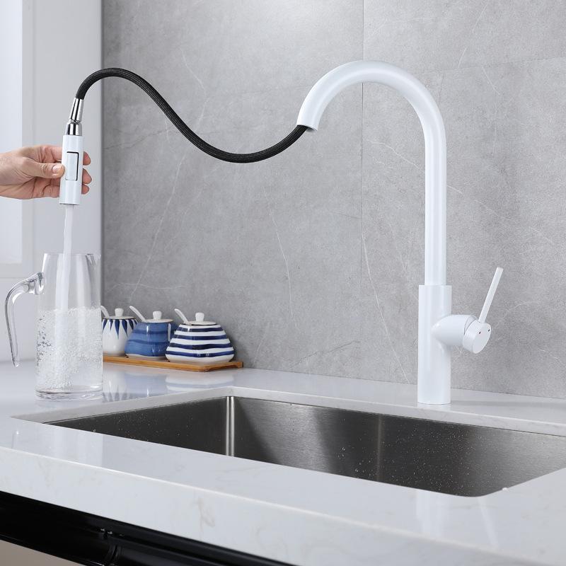 Grifo extraíble de cocina de acero inoxidable 304 blanco para fregadero de lavabo de verduras retráctil para el hogar grifo caliente y frío