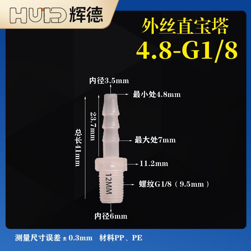 3/16-G 1.0/8.5inch -G1/8 Mangueira Plástico Fio Externo Passagem Direta Tubo de Água Junta Pagode PP Bocal de Água Conexão Rápida