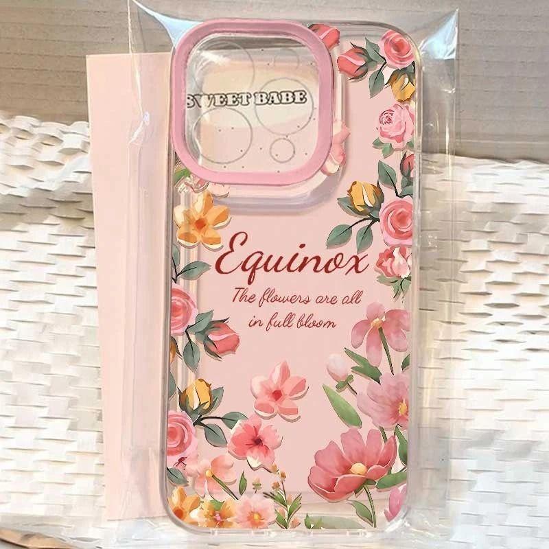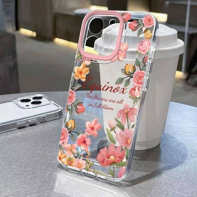 Flores Inglês para Capa de Celular Apple 17PROMAX iPhone16 Moderna 15 Transparente 13 Capa Mole 12 À Prova de Quedas