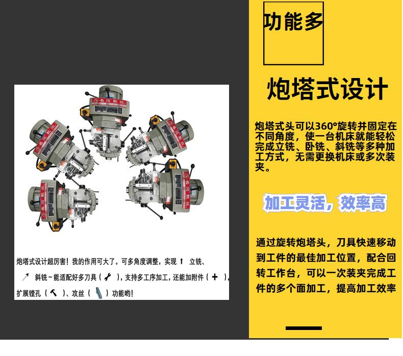 Fabricante Venda Direta Máquina de Fresar Torreta Alimentação Automática Furar Rosquear Corte Multifuncional M5 Marca Famosa Máquina de Fresar Vertical Cabeçote Giratório