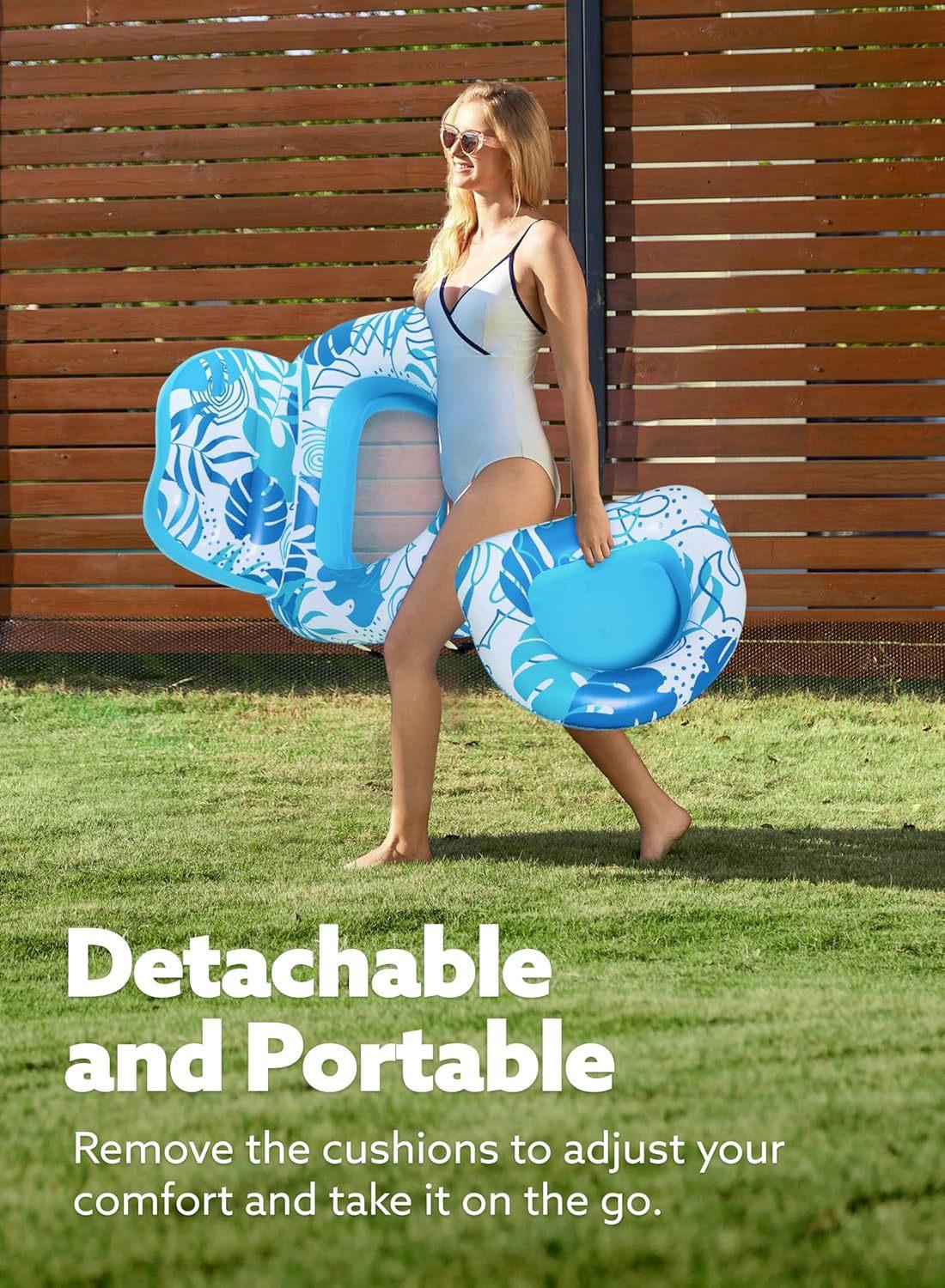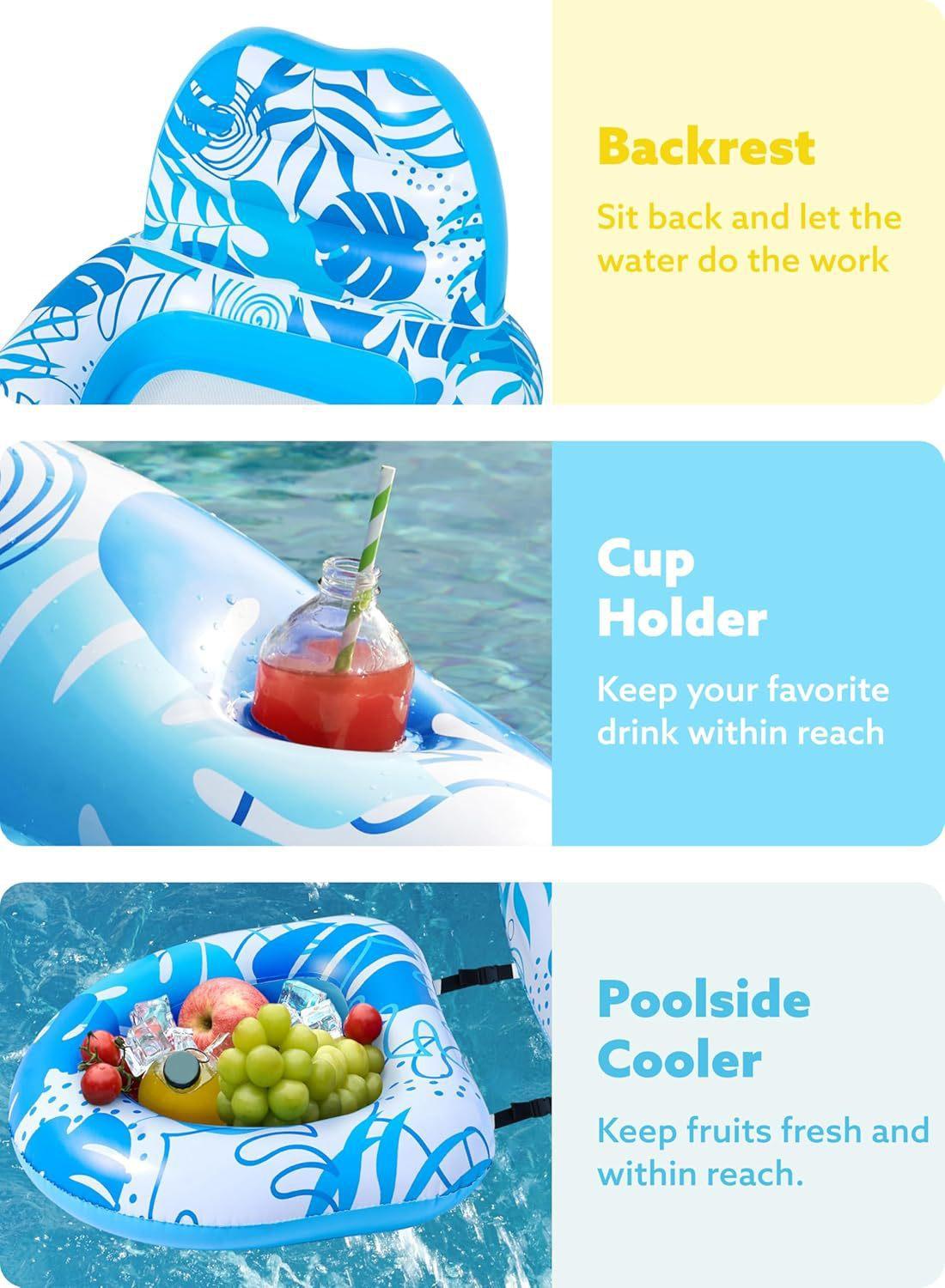 Poltrona Flutuante Inflável Seccional para Piscina Adulta em PVC Cadeira de Lazer para Piscina com Porta-Copos Encosto