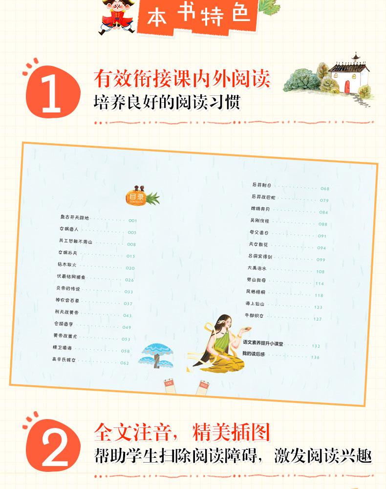 Mitos Antigos Chineses para Crianças Imagem Colorida Versão Pinyin Genuíno Leitura Extracurricular de Língua do Ensino Fundamental Clássico