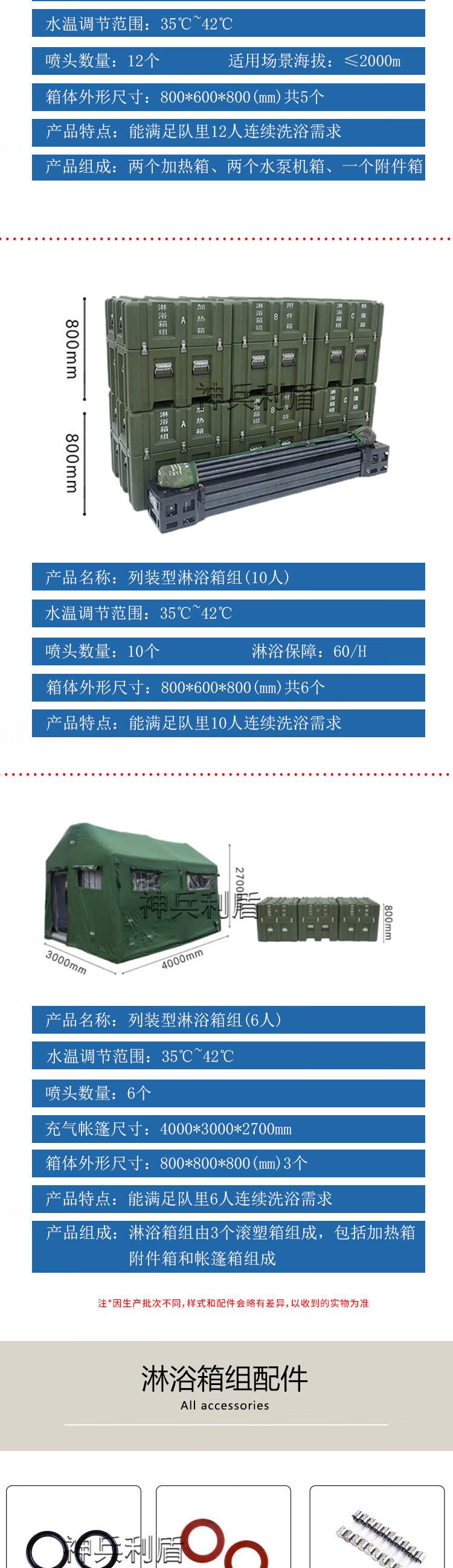 12-person shower box set (wooden box), 10 persons/12 persons shower tent, Heating unit high voltage package ou...
