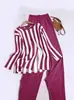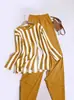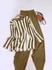 Transfronteiriço 2025 Primavera e Outono Novo Conjunto Feminino de Duas Peças Listrado de Manga Comprida e Calças com Cintura Elástica Casual
