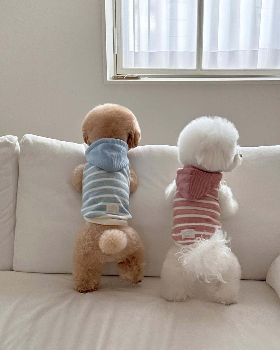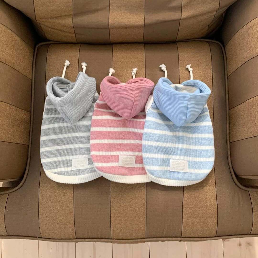 Outono e inverno simples listrado roupas para animais de estimação top de duas pernas com capuz roupas para cães pequenos Bichon Teddy filhote atacado