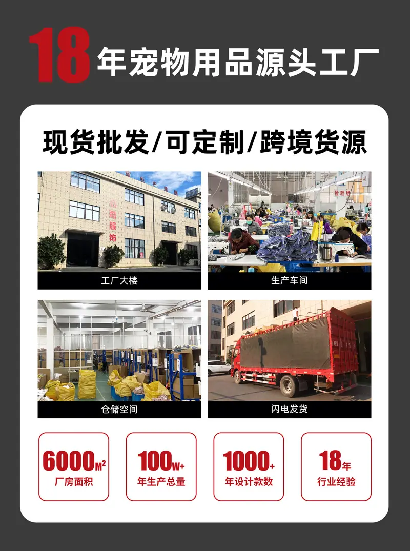 Oferecemos uma variedade de roupas para animais de estimação, incluindo capas de chuva, jaquetas, moletons, saias, camisetas, coletes, suéteres, roupas de recuperação, roupas confortáveis, coletes salva-vidas, fantasias de cosplay para festas, acessórios para animais de estimação, etc. e estilos personalizados.