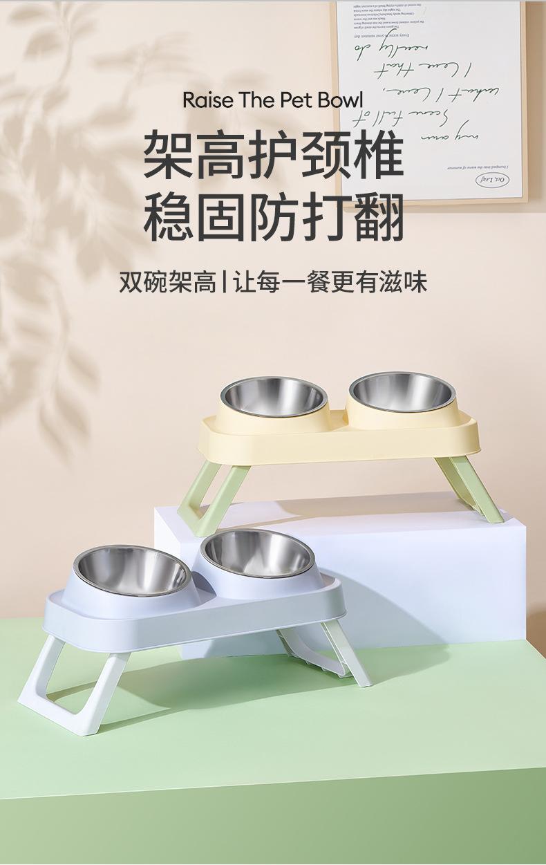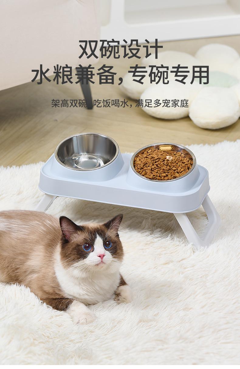 Tigela Dupla de Aço Inoxidável para Animais de Estimação Tigela para Gatos Tigela para Cães Bacia para Cães Tigela para Ração de Cachorro Dobrável Elevável Tigela para Beber Bacia para Comer Integrada