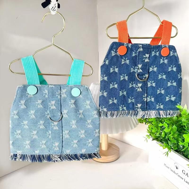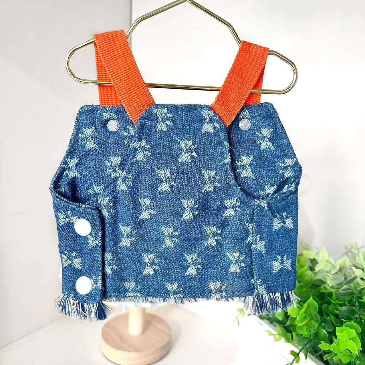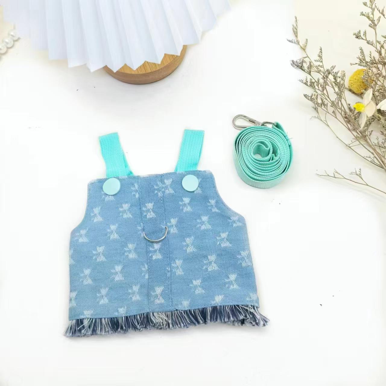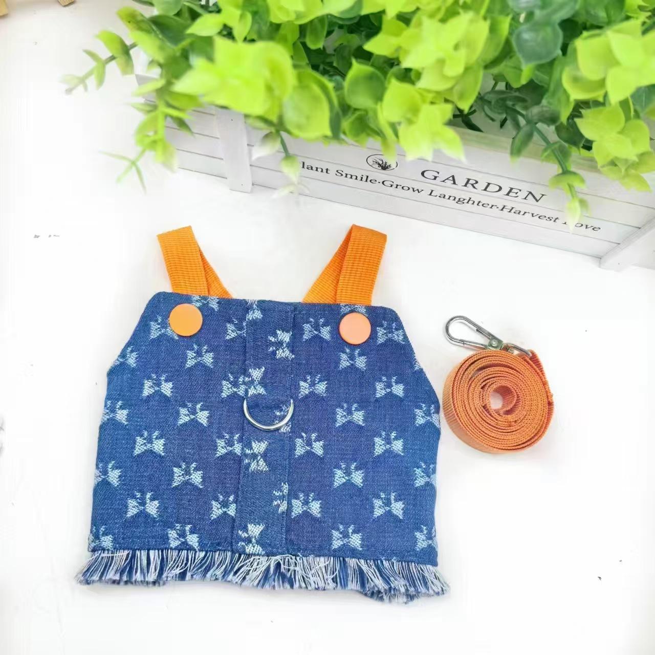 Roupas para animais de estimação, primavera e verão, fina, borla, jacquard, jeans, colete, pet, gato, cachorro, passeio, tração, arnês