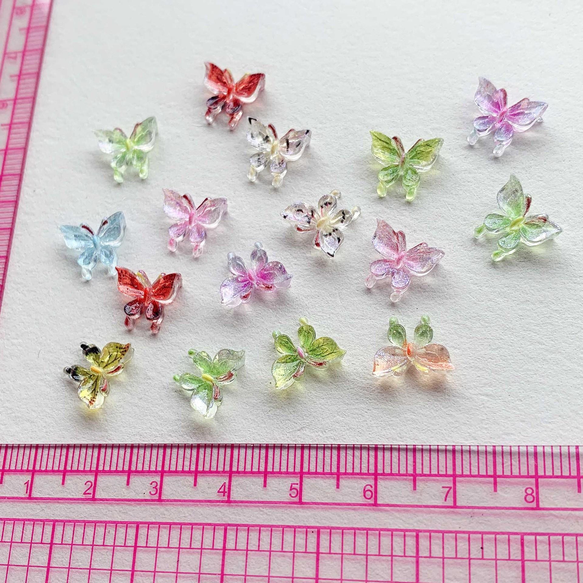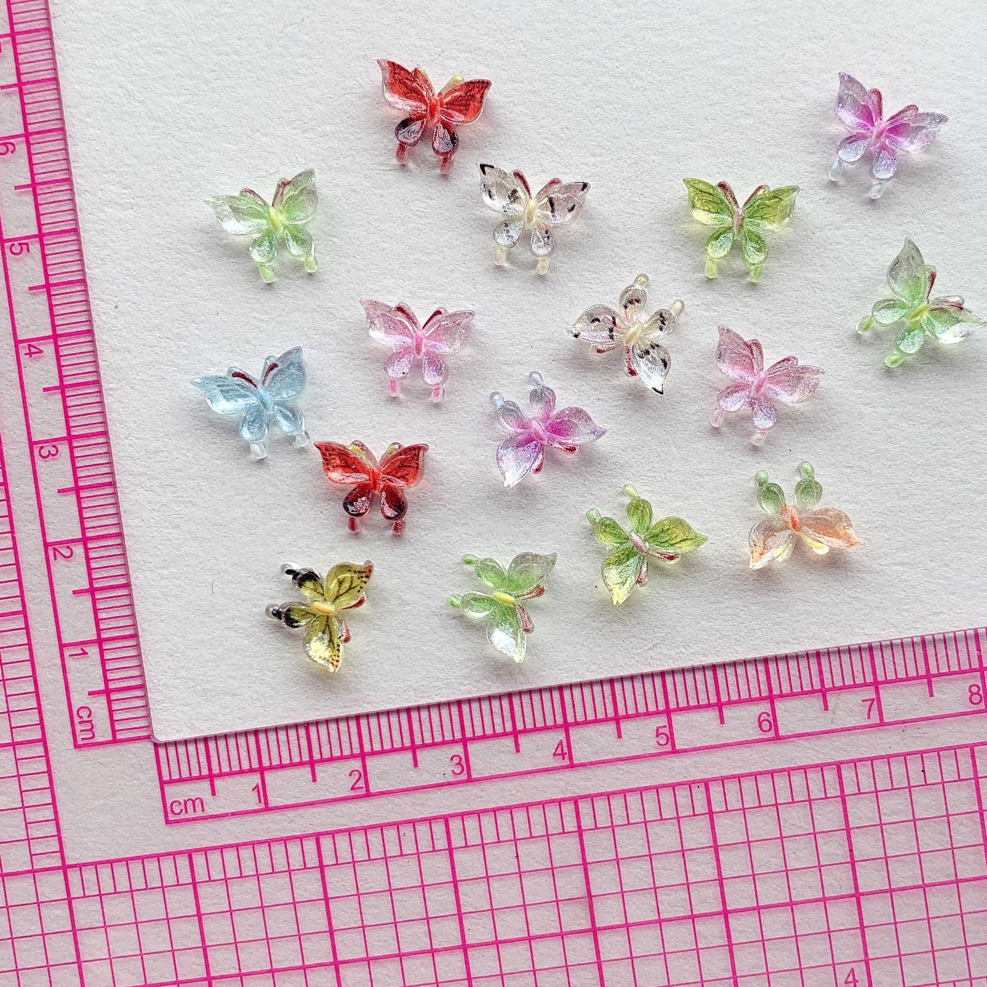 Mini acessórios de resina de borboleta elfo tridimensional de cor transparente, j unha, acessórios para brincos de unha, atacado, materiais para joias DIY