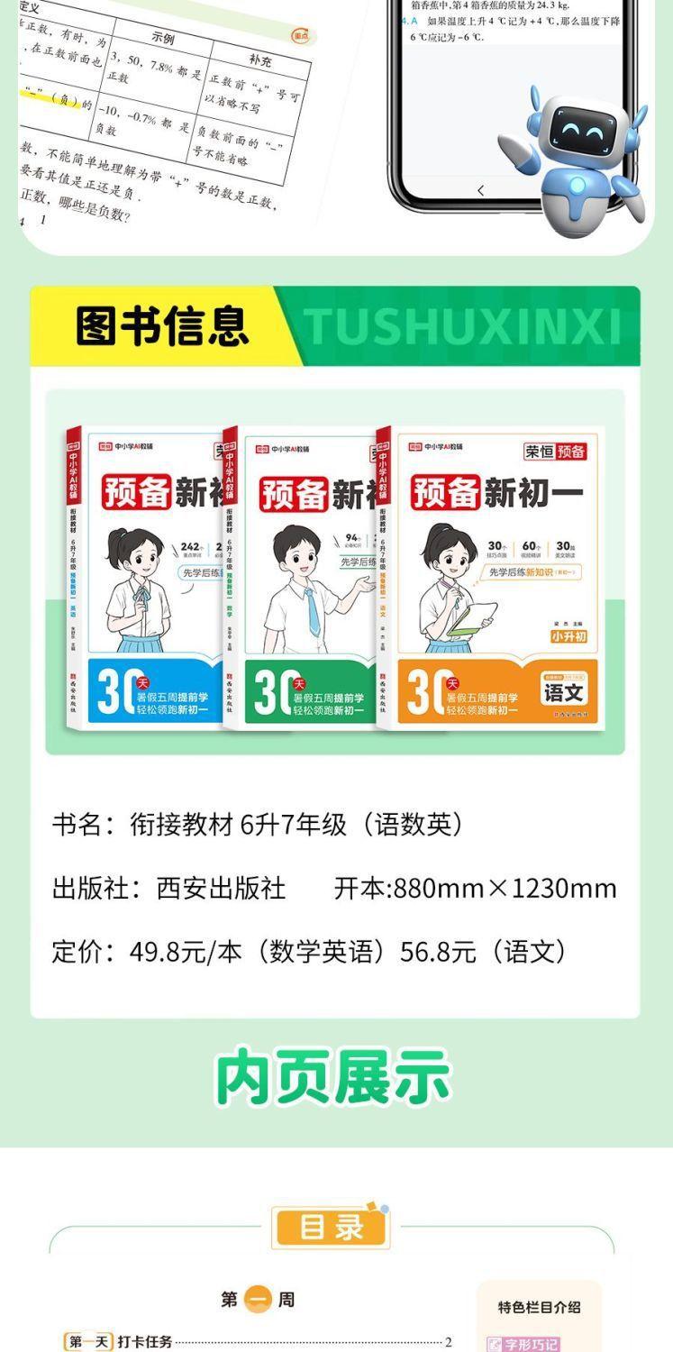 Chinese language [people's education press edition] preparing for the first grade of junior high school, Mathe...