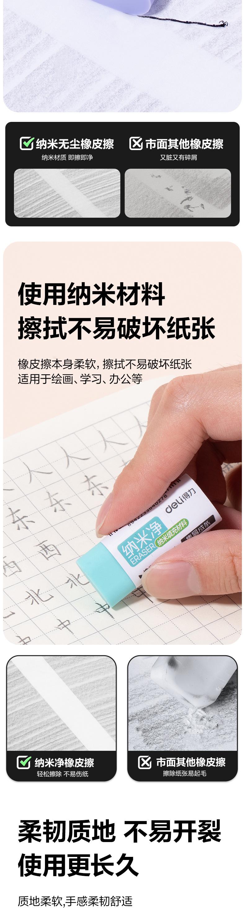 Borracha Deli Nano Clean Pequena Grande Borracha Limpa Sem Farelos Crianças Estudantes do Ensino Fundamental Papelaria Borracha Sem Marcas