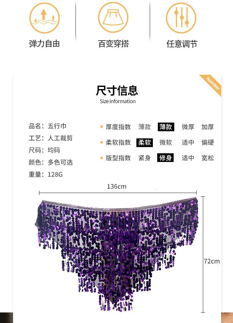 Fantasia de Festa de Festival Corrente de Cintura Dança do Ventre Acessório de Cintura Dança Indiana Borla de Paetês Roupa de Apresentação Lenço de Quadril para Apresentação