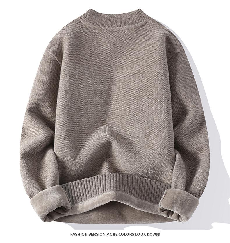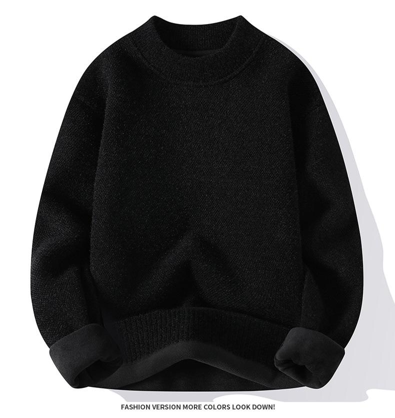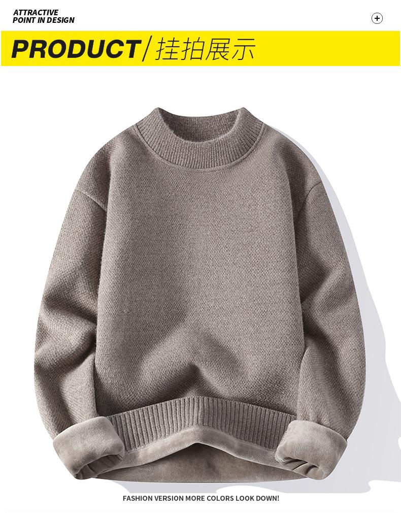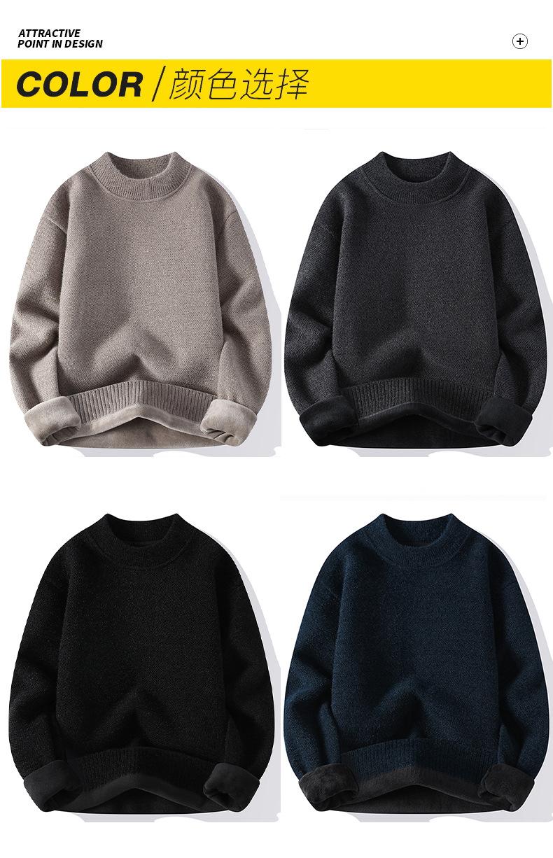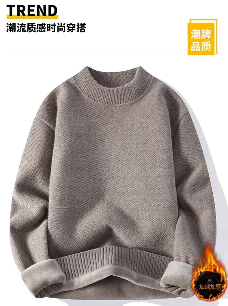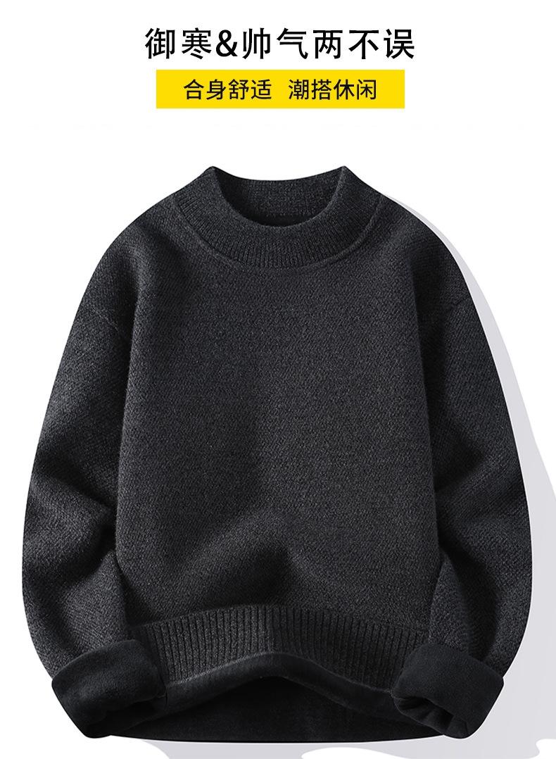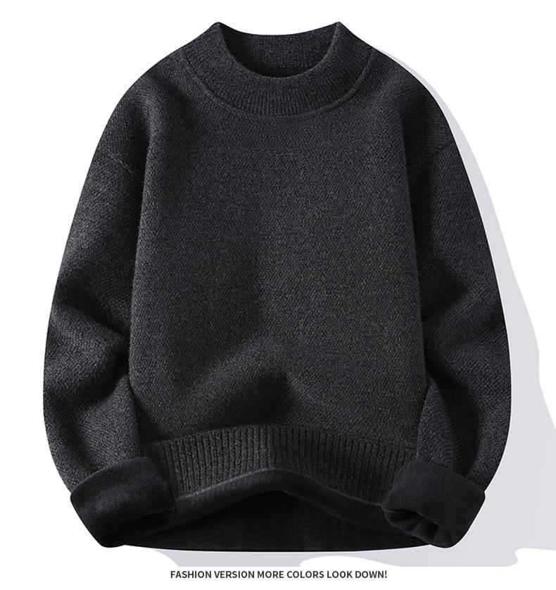 Suéter masculino outono e inverno novo suéter masculino de gola semi-alta plus veludo plus quente de malha base