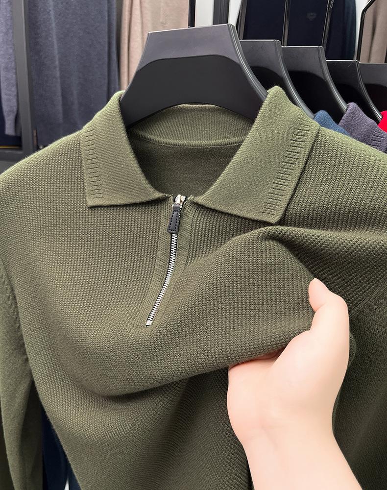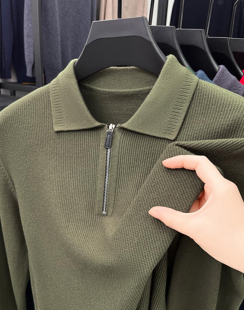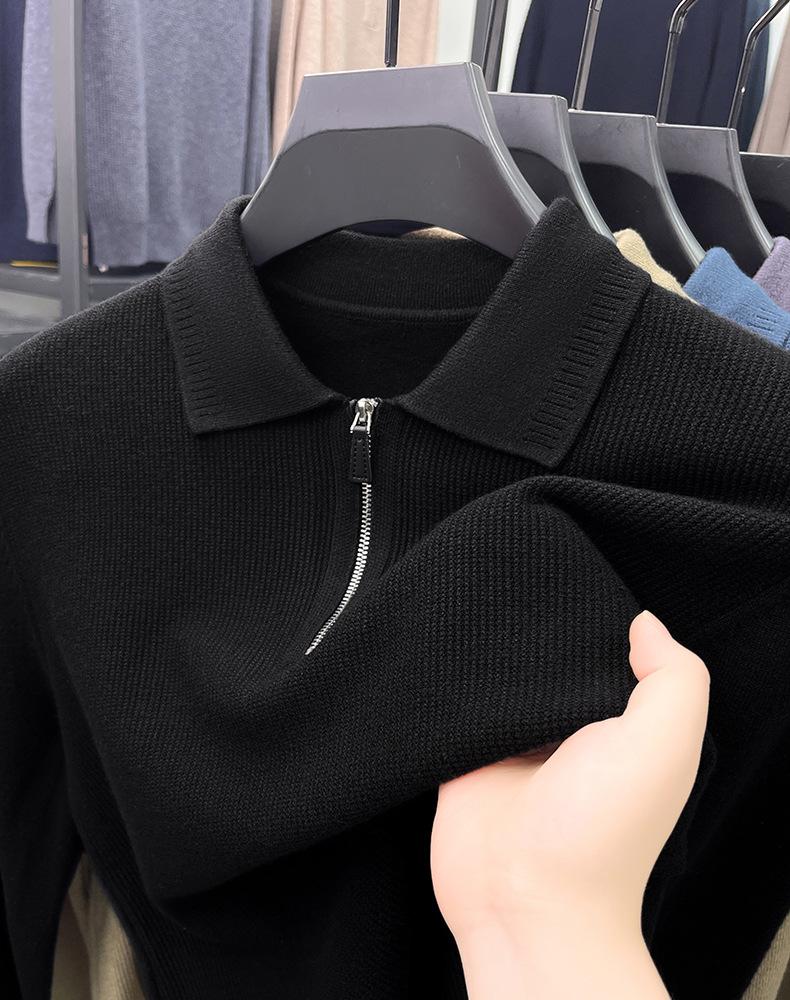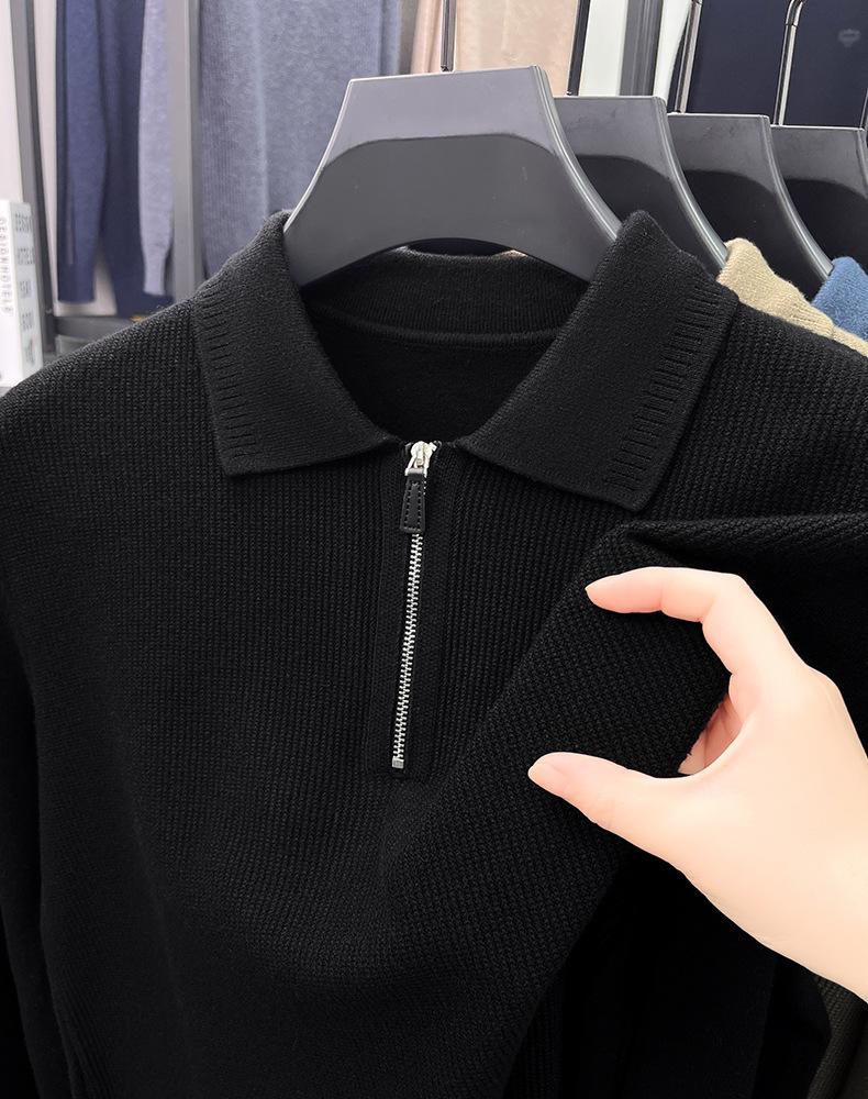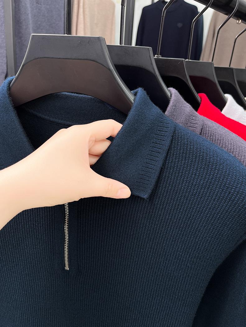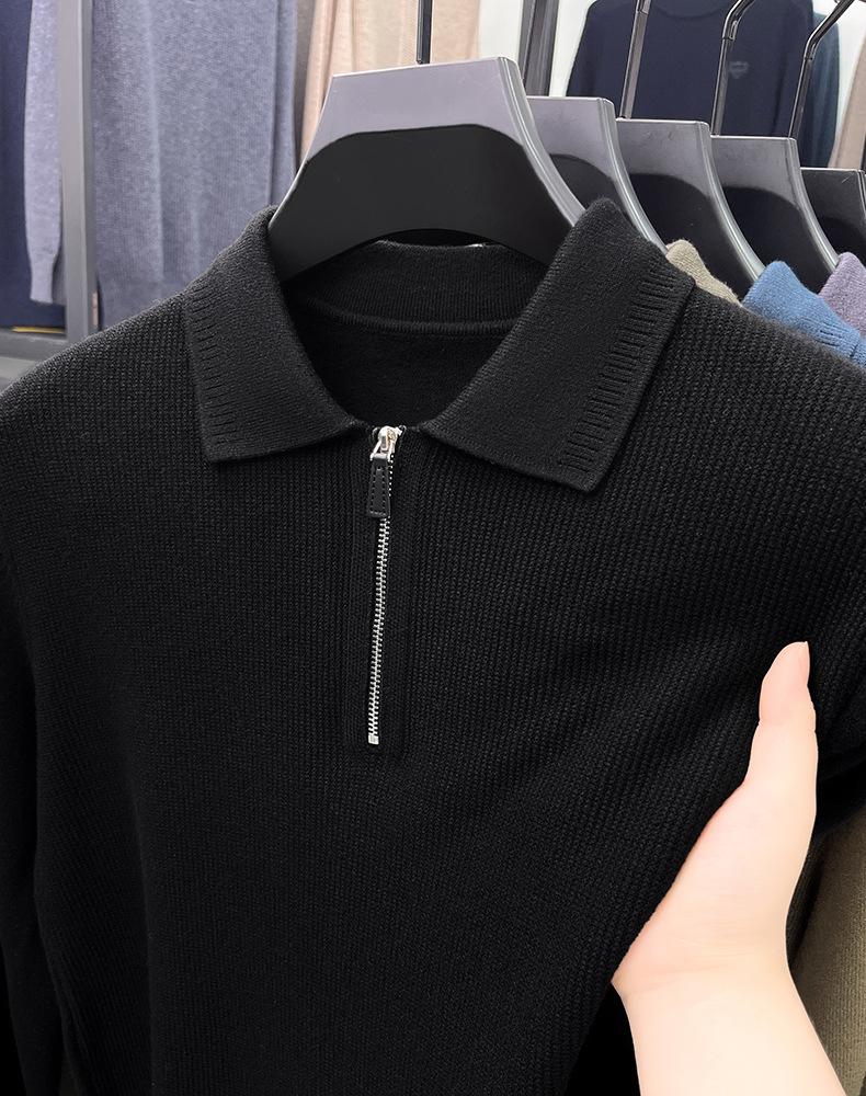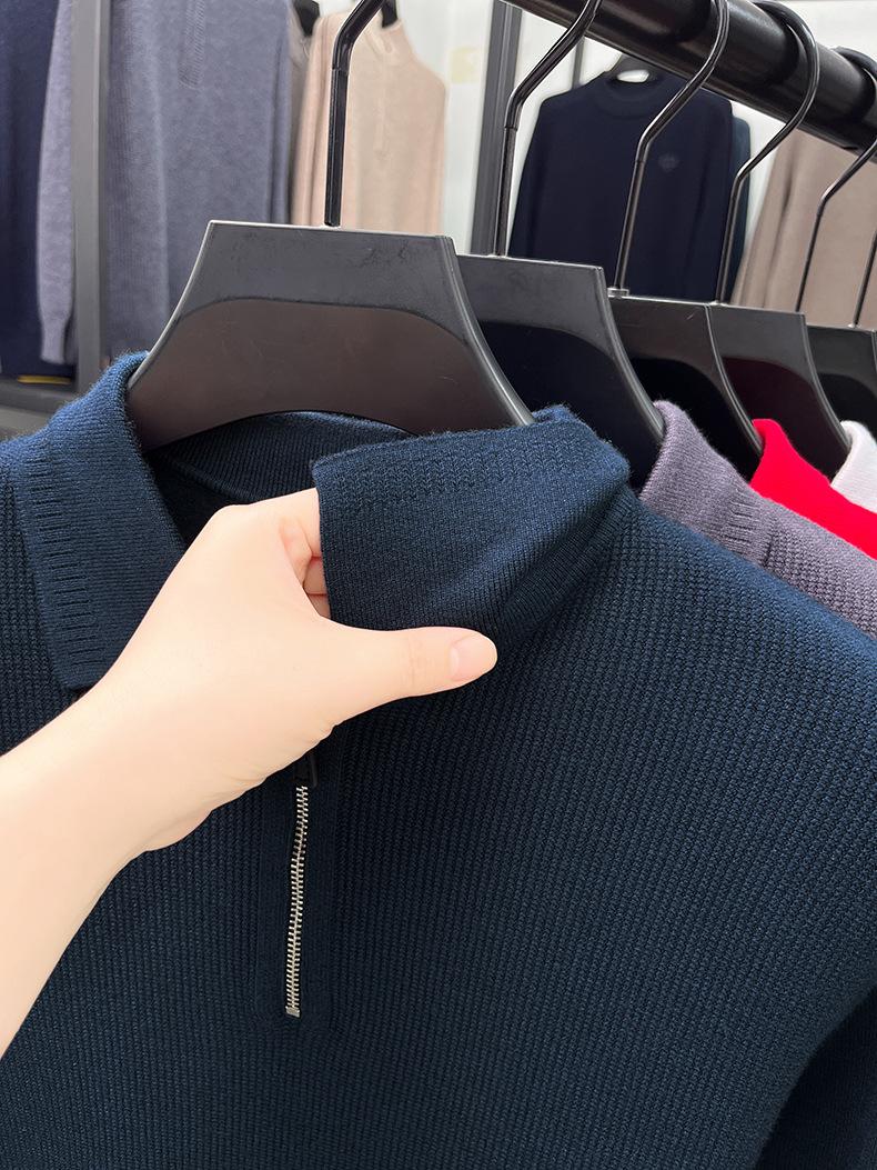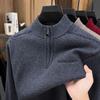 Suéter Gola Alta Masculino com Meio Zíper 2025 Inverno Estilo Coreano Jacquard Tricô Casual Camiseta Base para Homens