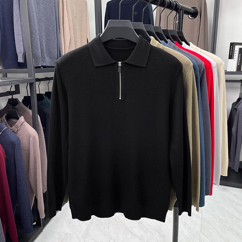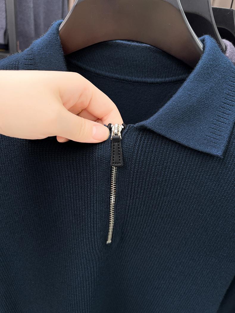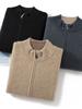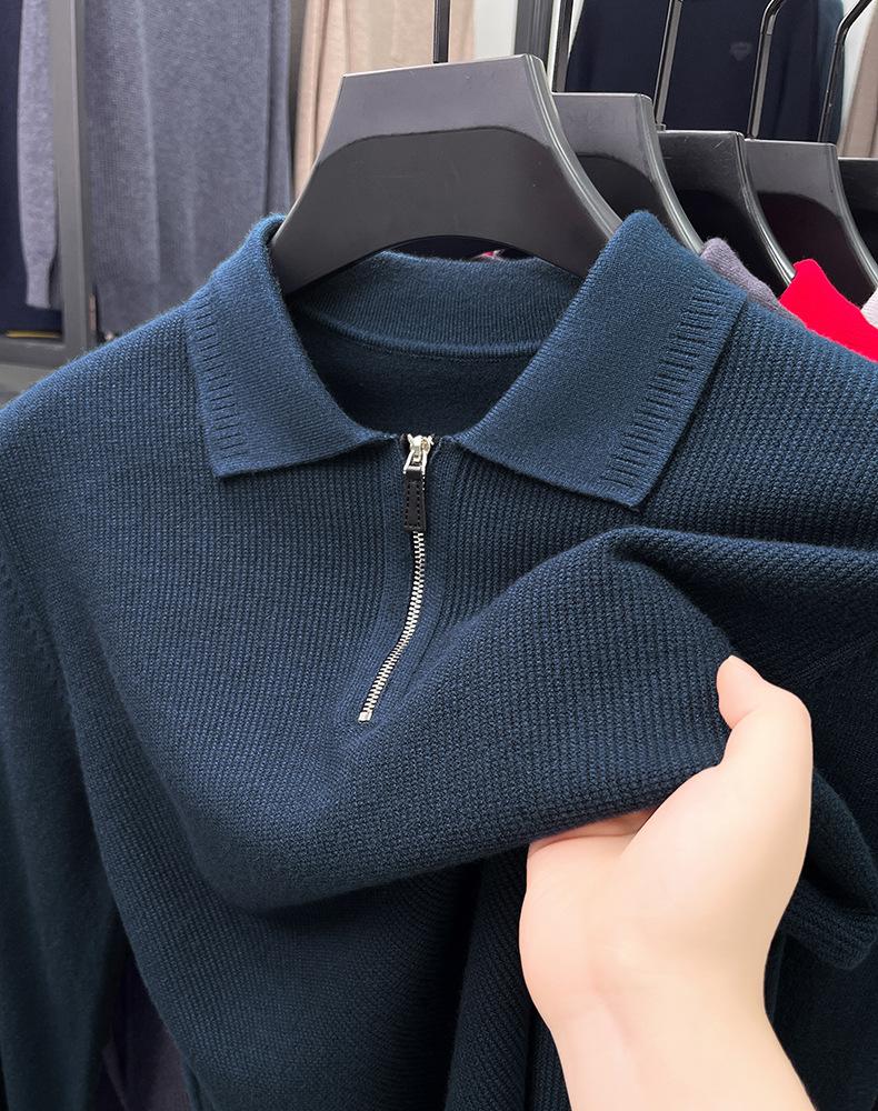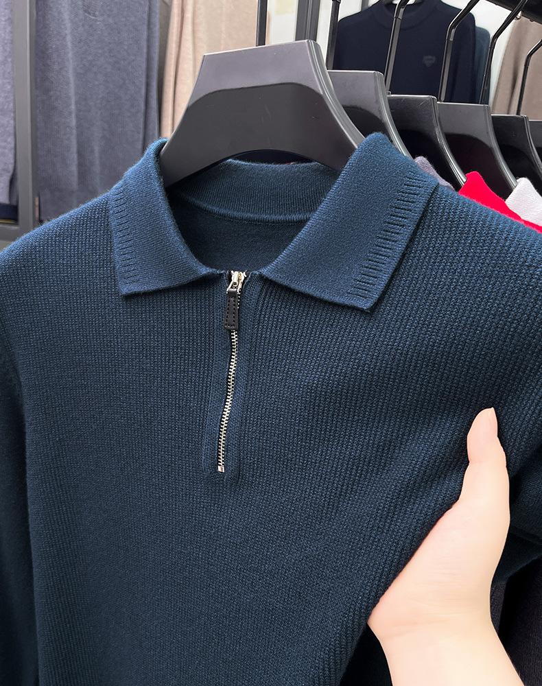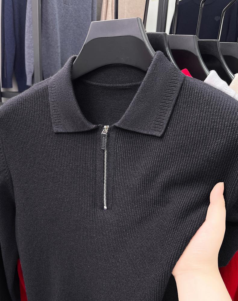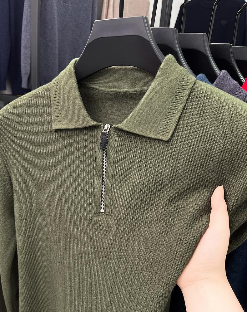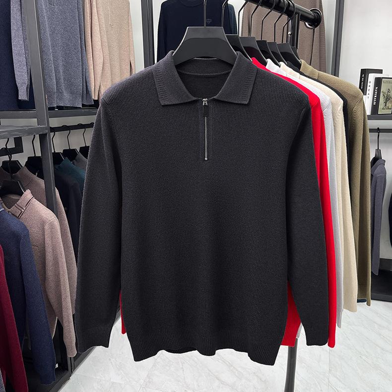Suéter Gola Alta Masculino com Meio Zíper 2025 Inverno Estilo Coreano Jacquard Tricô Casual Camiseta Base para Homens