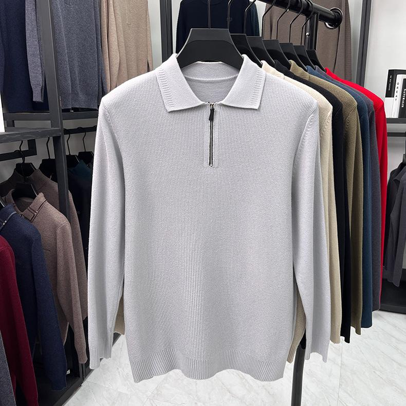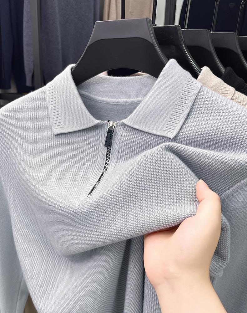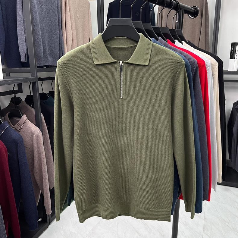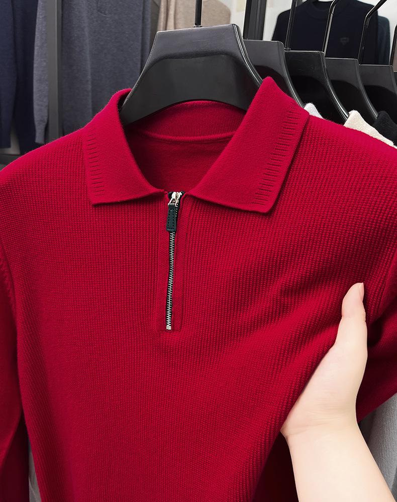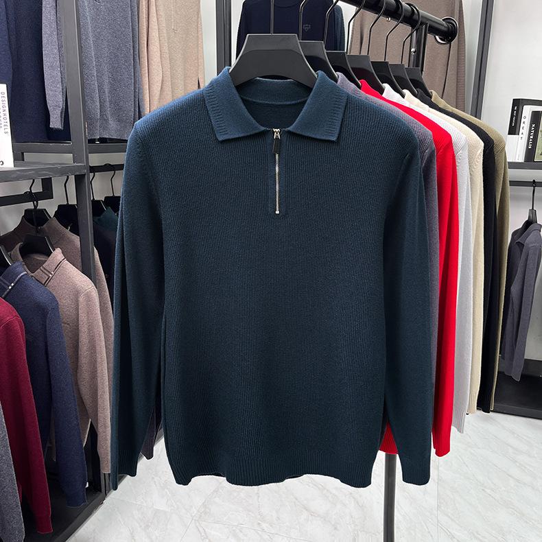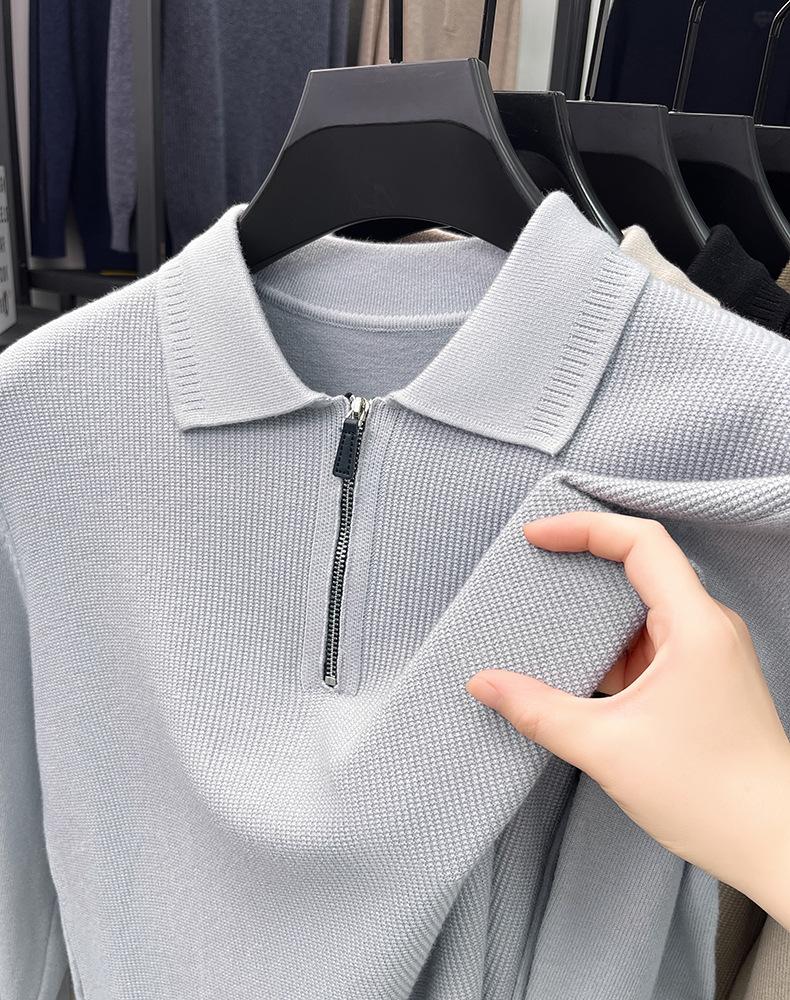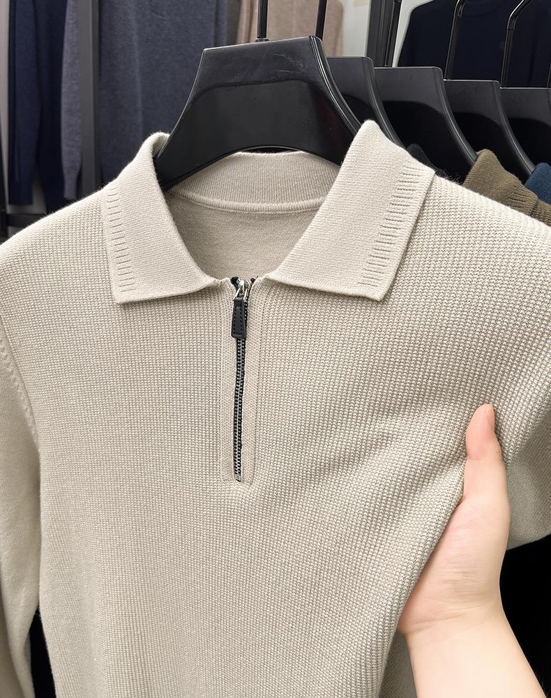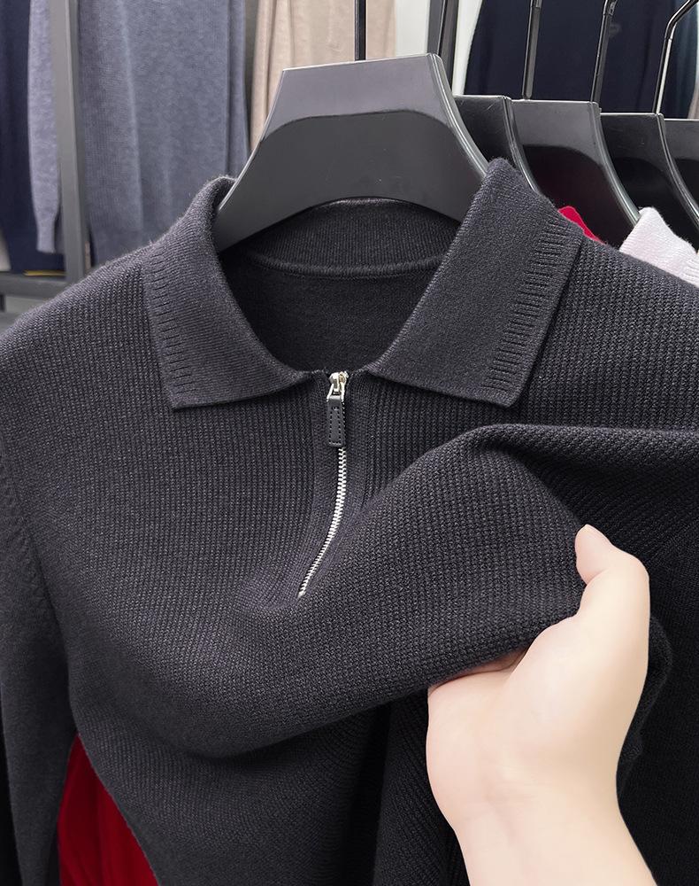 Suéter Gola Alta Masculino com Meio Zíper 2025 Inverno Estilo Coreano Jacquard Tricô Casual Camiseta Base para Homens