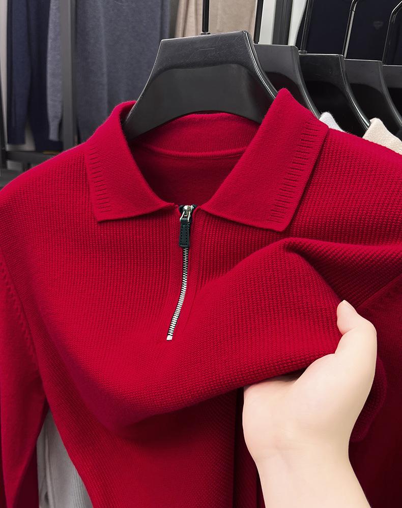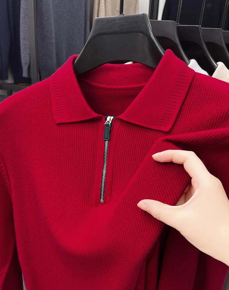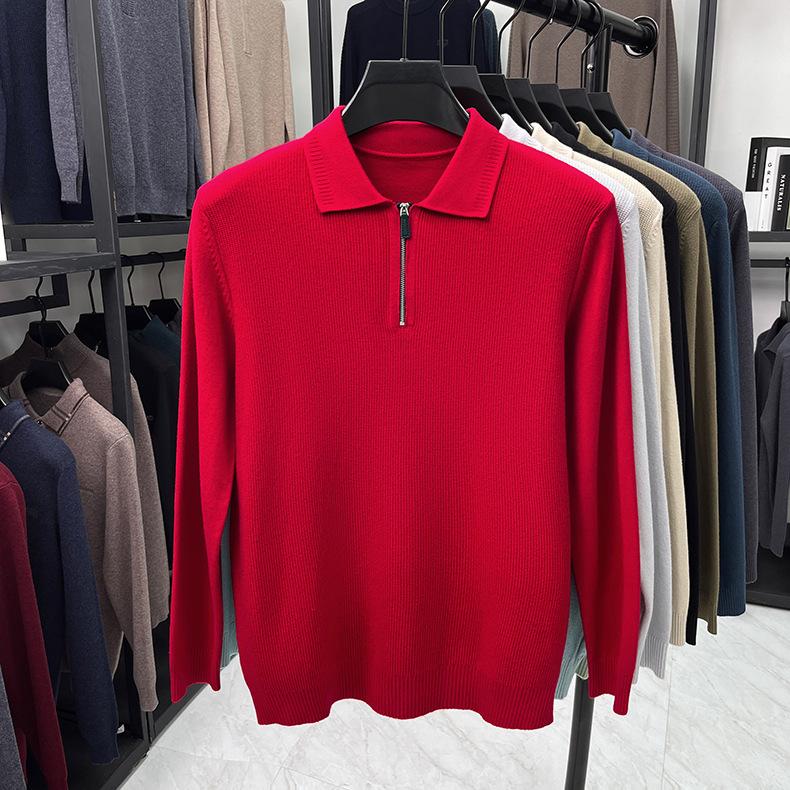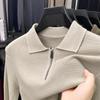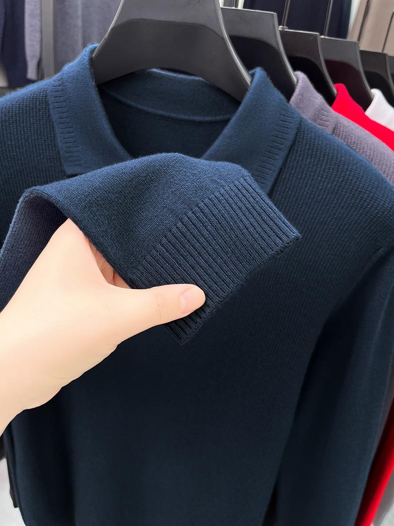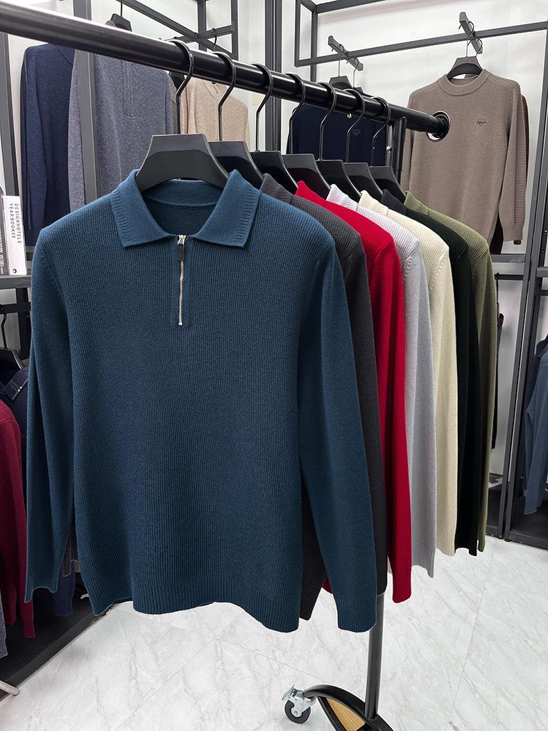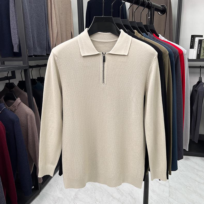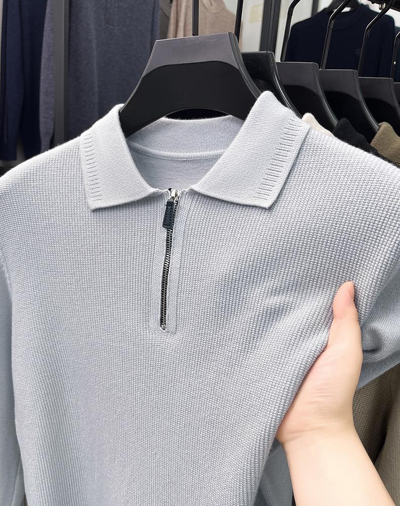 Suéter Gola Alta Masculino com Meio Zíper 2025 Inverno Estilo Coreano Jacquard Tricô Casual Camiseta Base para Homens