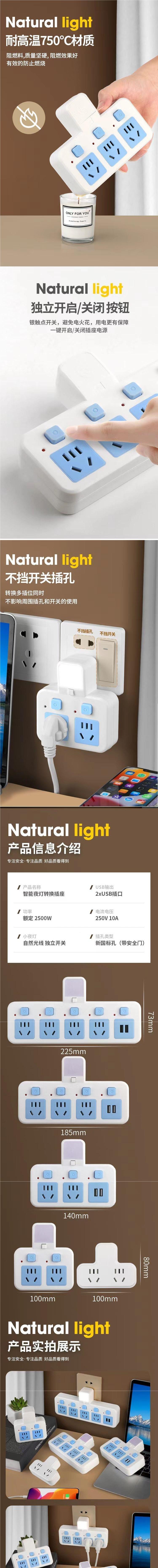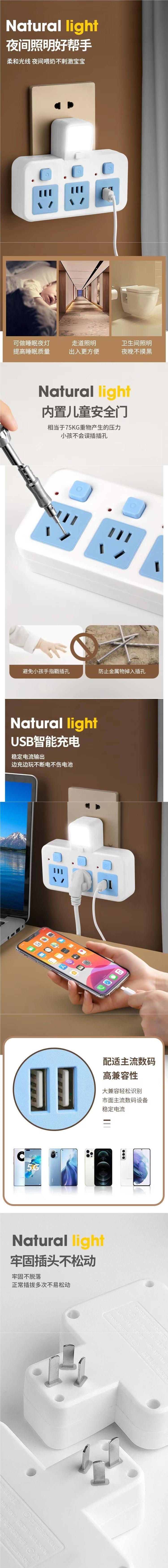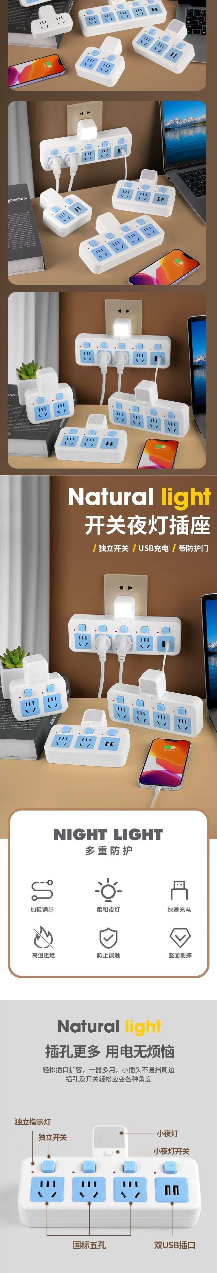 3c certification + lightning protection + child protection 1 minute 3 independent switch + night light + usb